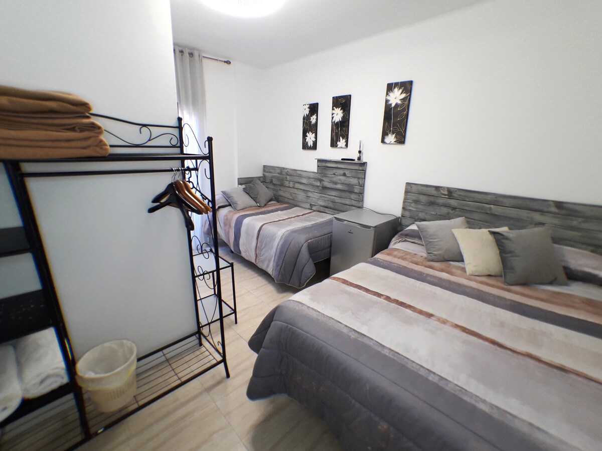 Schlafzimmer 3 Einzelbetten und Gemeinschaftsbad