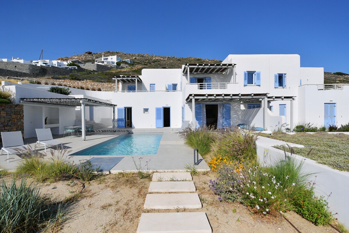 Die Villa Arismari befindet sich auf einem ruhigen Hügel, umgeben von natürlichen Felsblöcken, mit Blick auf die schöne Küste von Orkos. Wir haben einen atemberaubenden Panoramablick auf die Ägäis und unsere Nachbarinsel Paros. Wir befinden uns zwischen dem Hauptstrand und kleineren Buchten von Orkos. Während du die Aussicht genießt, die die Villa Arismari bietet, bereite dich darauf vor, deine unglaublichsten Selfies zu machen. Die Villa Arismari ist eine wunderschön gestaltete Villa mit minimalistischer, kykladischer Architektur.