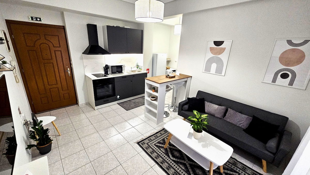 Ein modernes und komfortables Halbkeller-Studio (Schlafzimmer, Wohnzimmer, Küche, Badezimmer, Büro), mit industriellen Einflüssen eingerichtet, in einem der schönsten Viertel von Larissa. Sie ist ausschließlich an die Bedürfnisse und Anforderungen von Airbnb-Gästen angepasst, mit brandneuen Möbeln und Geräten, zentraler Erdgasheizung und mit allem modernen Komfort (Cosmote TV, Internet 100 Mbit/s usw.) ausgestattet. Wir bieten dir gerne einen angenehmen Aufenthalt an!