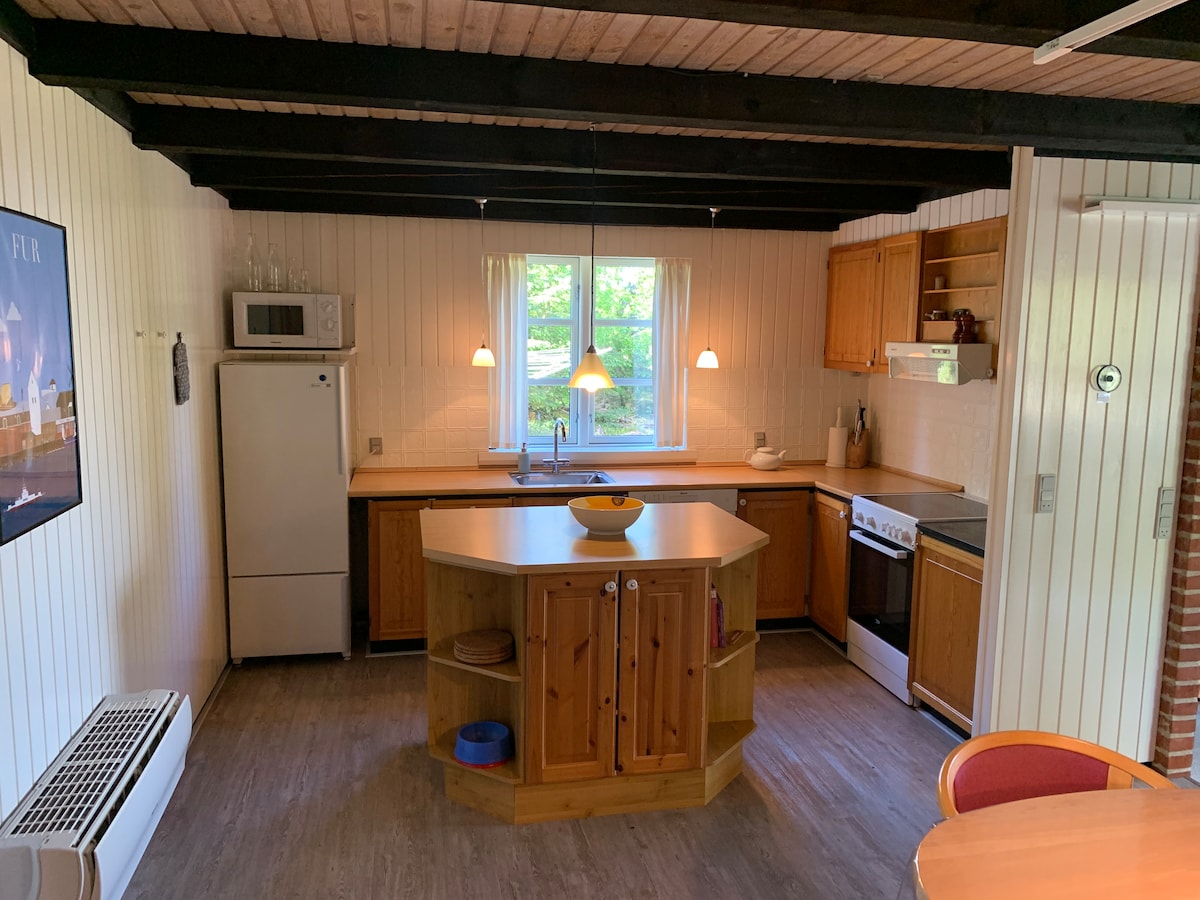 Das Ferienhaus wurde 2008 erbaut, befindet sich in einer ruhigen und friedlichen Ferienhausgegend, mit 400 m zu einem kinderfreundlichen Strand, 5 Min. zur Stadt mit Einkaufsmöglichkeiten, Hafen und Gasthaus. 10 Minuten bis zur Fur Brewery, was immer eine gute Erfahrung ist. ein schöner Garten mit Platz für Kinder und Spiele (Schaukel, Rutsche und Sandkasten). Hängematte und Lounge Im Jahr 2025 wird das Haus innen und außen ein neues Aussehen haben. das Haus enthält: Glasfasernetz: Kostenloses WLAN Smart-TV mit Chromecast Feuerofen Hochstuhl und Reisebett für Kleinkinder trockner waschmaschine