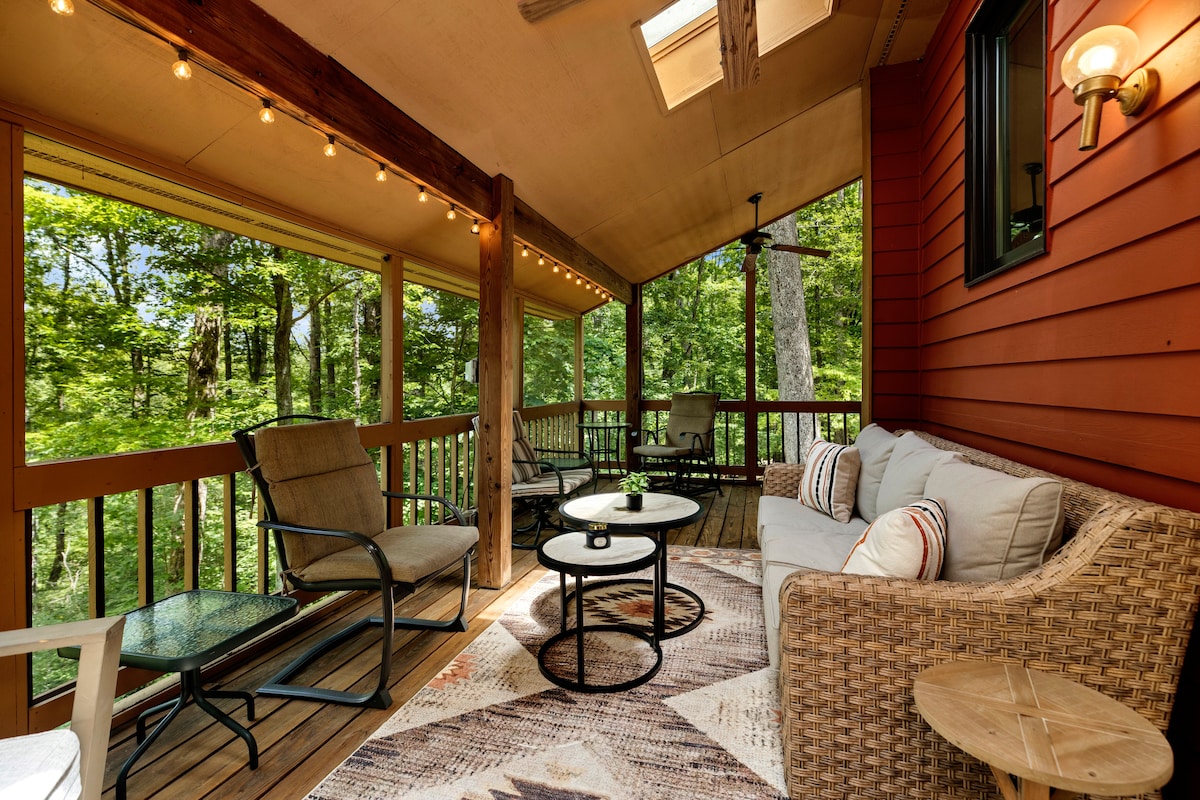Die Dancing Bear Lodge ist eine Hütte in Roseland, VA. Sie ist etwas mehr als 2.000 Quadratfuß groß, was sie zu einer geräumigen Unterkunft für größere Gruppen von bis zu zehn Personen macht. Wenn du auf der Suche nach einem „autarken“ Erlebnis auf 38 Acres mit einem spektakulären Bergblick bist, ist diese Unterkunft genau das Richtige für dich! Die Unterkunft bietet eine schöne Balance zwischen Abgeschiedenheit und dem Komfort moderner Annehmlichkeiten und einer erstklassigen Lage. Folge unseren Abenteuern auf IG @MapleCreekProperties und FB bei Maple Creek Properties!