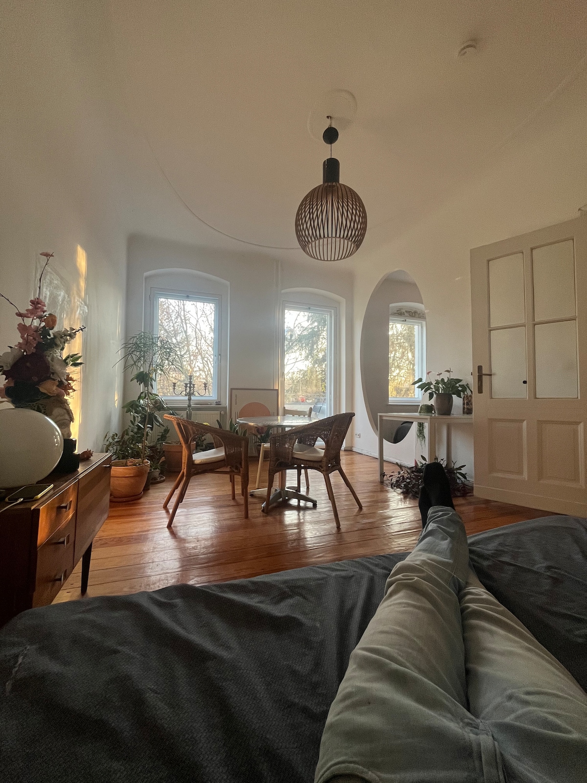 Helle und geräumige Wohnung im Herzen von Schillerkiez Neukölln. Genießen Sie Ihren Aufenthalt in einem typischen Berliner Altbau aus dem frühen 20. Jahrhundert, nur 5 Minuten vom Tempelhoferfeld entfernt. Die mit modernem Bad, Küche ausgestattete Wohnung befindet sich im 4.Stock (ohne Aufzug). Mit den nach West ausgerichteten Fenstern können Sie den wunderschönen Sonnenuntergang gemütlich vom Sofa genießen und beobachten, wie sich das Licht im Wohnzimmer ausbreitet.