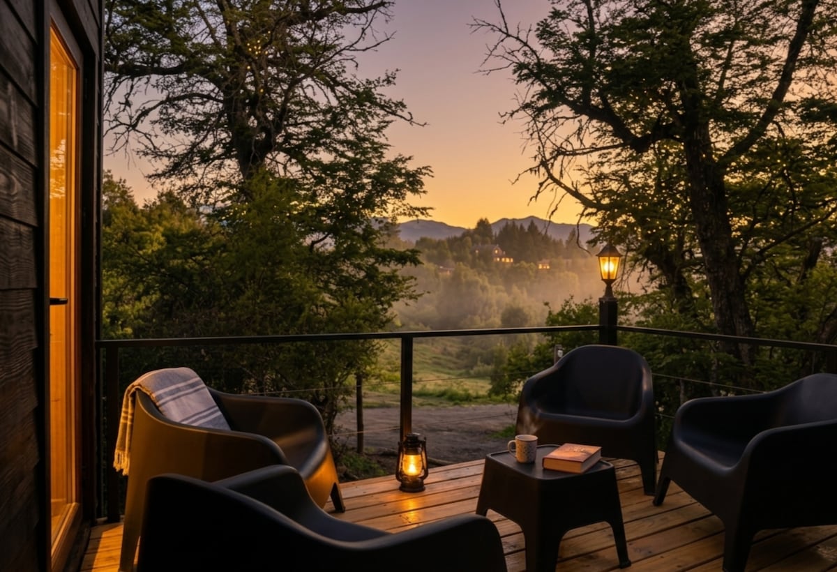 Erlebe die Ruhe des Waldes in unserer gemütlichen Hütte, die es dir ermöglicht, einen intimen Rückzugsort mit deinem Partner zu genießen. Seine großen Fenster bieten einen atemberaubenden Blick auf die Naturlandschaft Die Lage ist ideal, um Seen und Berge zu erkunden, mit unserem Hund Juanita, der dein Guide sein wird. Nachts kannst du eine Pause machen privatparker mit Verdunkelungsvorhängen, die das Licht vollständig blockieren. Starlink-Internet, um eine ausgezeichnete Internetverbindung zu gewährleisten.