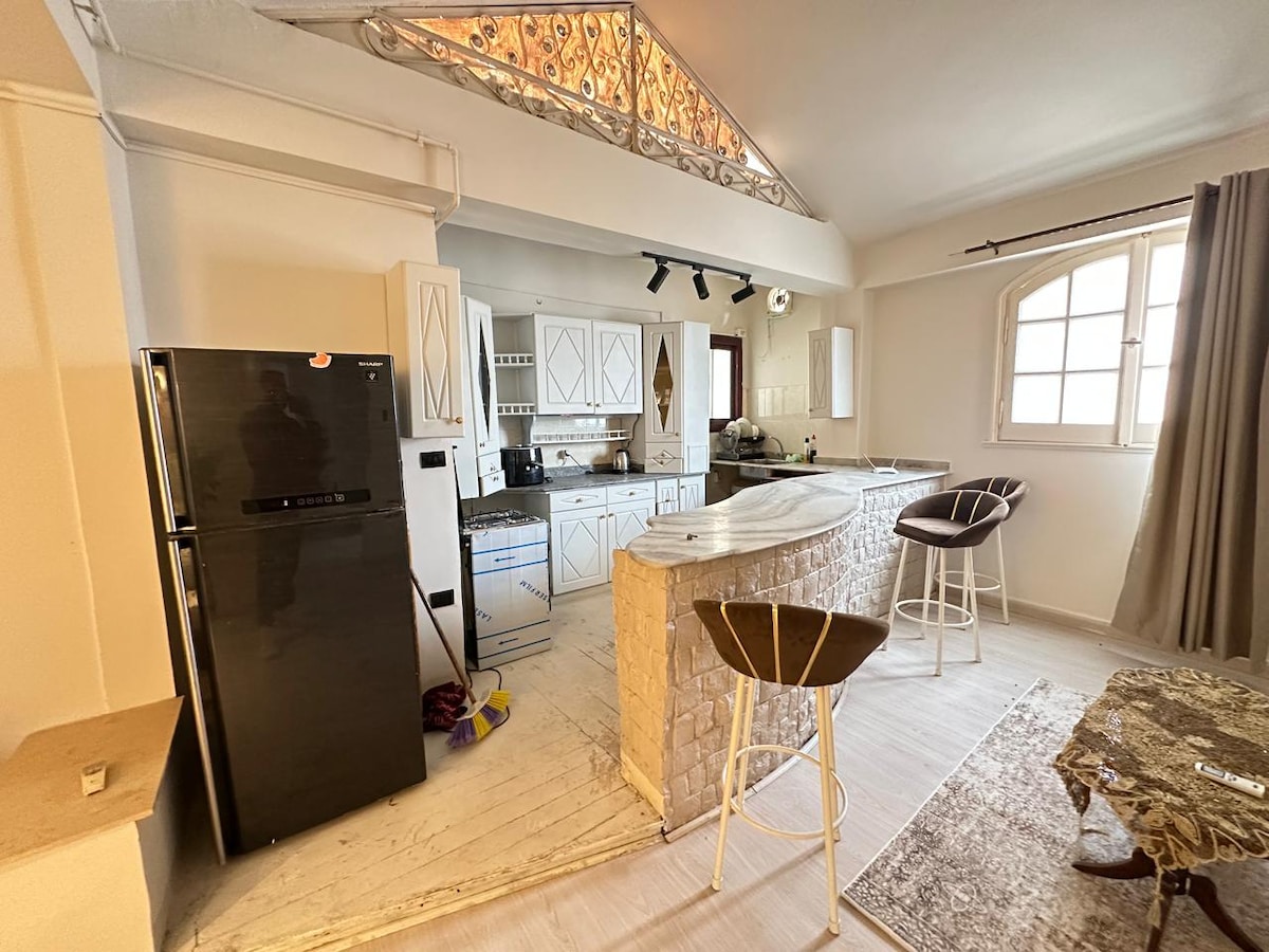 Willkommen in unserem zentral gelegenen, historischen Rückzugsort 🏛️✨, eingebettet im Herzen von Downtown Kairo … Wo Vintage-Charme auf modernen Komfort trifft 🛋️💫. Tritt ein in die Eleganz der ägyptischen Khedival-Ära 👑, wenn du unsere familienfreundliche Wohnung mit hohen Decken und atemberaubenden architektonischen Details betrittst, die die Pracht einer vergangenen Zeit widerspiegeln 🕰️. Erlebe eine einzigartige Mischung aus Geschichte und Komfort – perfekt für einen unvergesslichen Aufenthalt in der Stadt ❤️🏙️