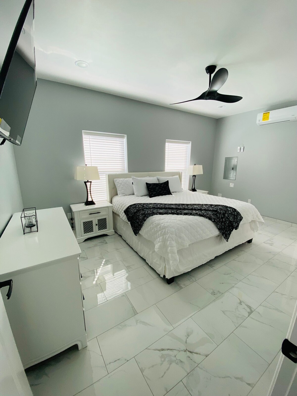 Lehne dich zurück und entspanne dich in diesem ruhigen, modernen Retro-Raum. Gönn dir: Kaffeebar (Tropf und Keurig), Mikrowelle, elektrische Frühstücksstation (Grillplatte und Toaster), Kühlschrank und viele Snacks und Getränke. Entspannen: Die Dusche verfügt über eine eingebaute Sauna und das bequemste Bett und die Bettwäsche aller Zeiten! Es gibt eine wirklich freundliche Außenkatze, Felita 🤗und einen Hund, Samson, der nur nach draußen geht, wenn wir das Haus tagsüber verlassen. Lass es uns einfach wissen, wenn du ihn in seinem riesigen Käfig haben möchtest, wenn wir das Haus verlassen!