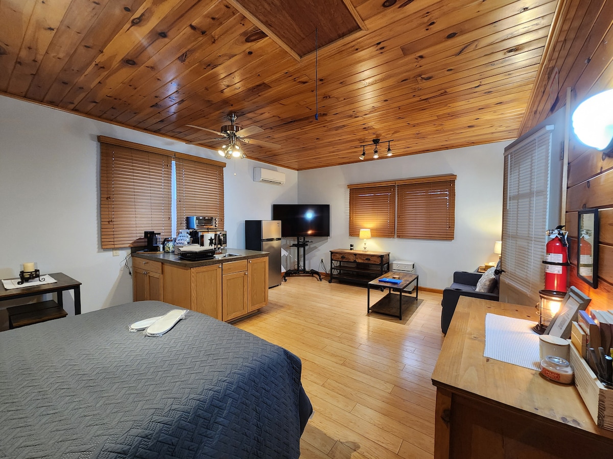 Willkommen in unserem gemütlichen, neu renovierten Studio mit einem privaten Eingang. Dieses Studio liegt zentral in einer beliebten Straße in Niagara Falls. Es ist eine 8-10-minütige Fahrt von der Innenstadt und den Wasserfällen und nur einen kurzen Spaziergang von einer Bushaltestelle entfernt, die dich an den richtigen Ort bringt. Mein Ziel ist es, deinen Aufenthalt angenehm zu machen, deshalb habe ich dafür gesorgt, dass du Folgendes hast: - Smart-TV und kostenlose Filme - Kaffee und Snack - Brettspiele - Handtücher - Voll ausgestattete Küche -Wäscheservice (gegen Gebühr)