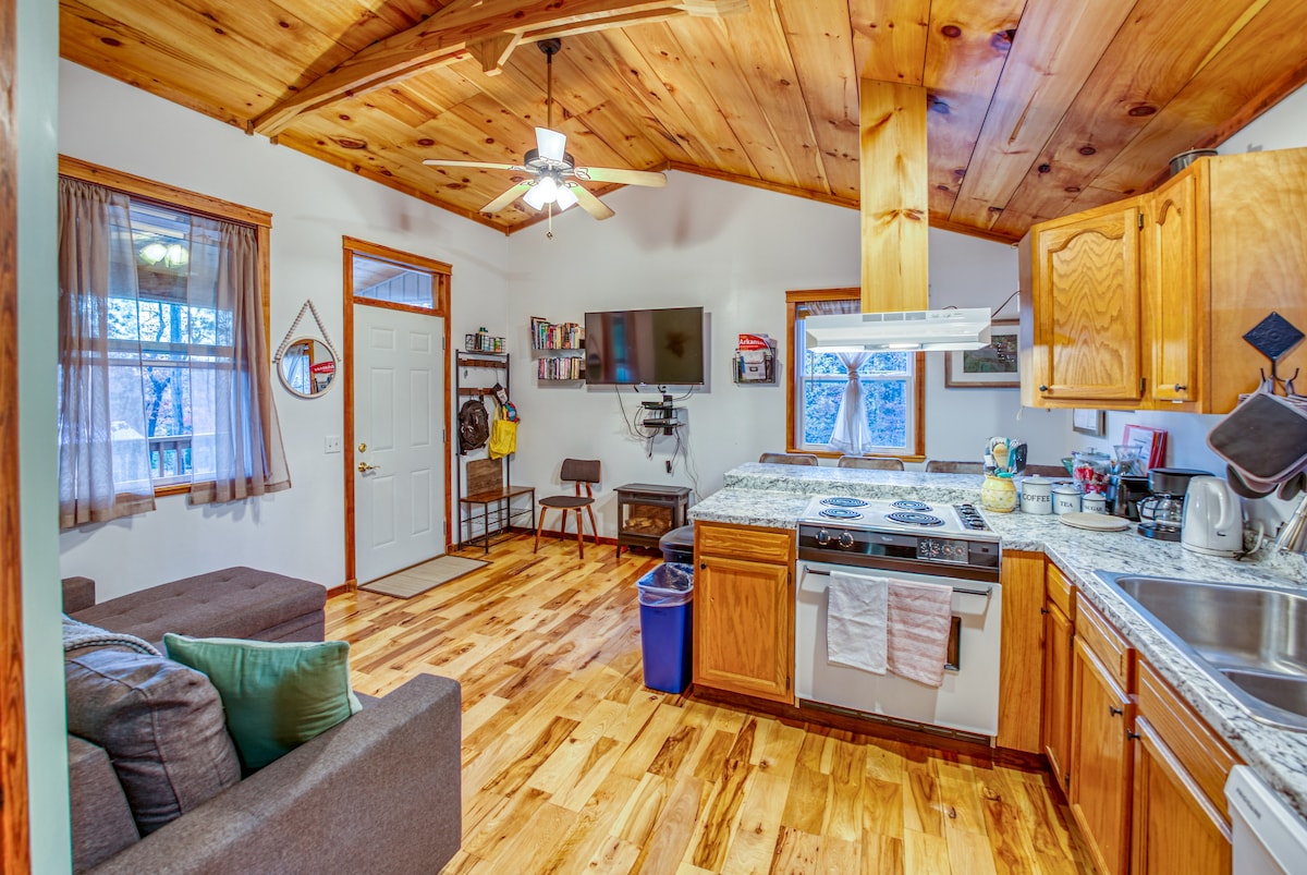 Entfliehe in dein eigenes Ozark-Versteck! Antenna Pine Cabin ist ein Paradies für Wanderer – in der Nähe des Buffalo National River, 15 Autominuten entfernt, mit privatem Wanderweg zum Antenna Pine Overlook. Wache mit Vogelgesang auf, trinke Kaffee auf der Terrasse und wandere dann zum Antenna Pine Overlook, um eine atemberaubende Aussicht zu genießen. Wandere durch Klippen zu einem versteckten, 12 Meter hohen Wasserfall oder erlebe Abenteuer in Hemmed-in-Hollow. Gemütliches 1 Bett/1 Bad, Feuerstelle, Grill und voll ausgestattete Küche - alles, was du für einen wilden und wunderbaren Aufenthalt benötigst.