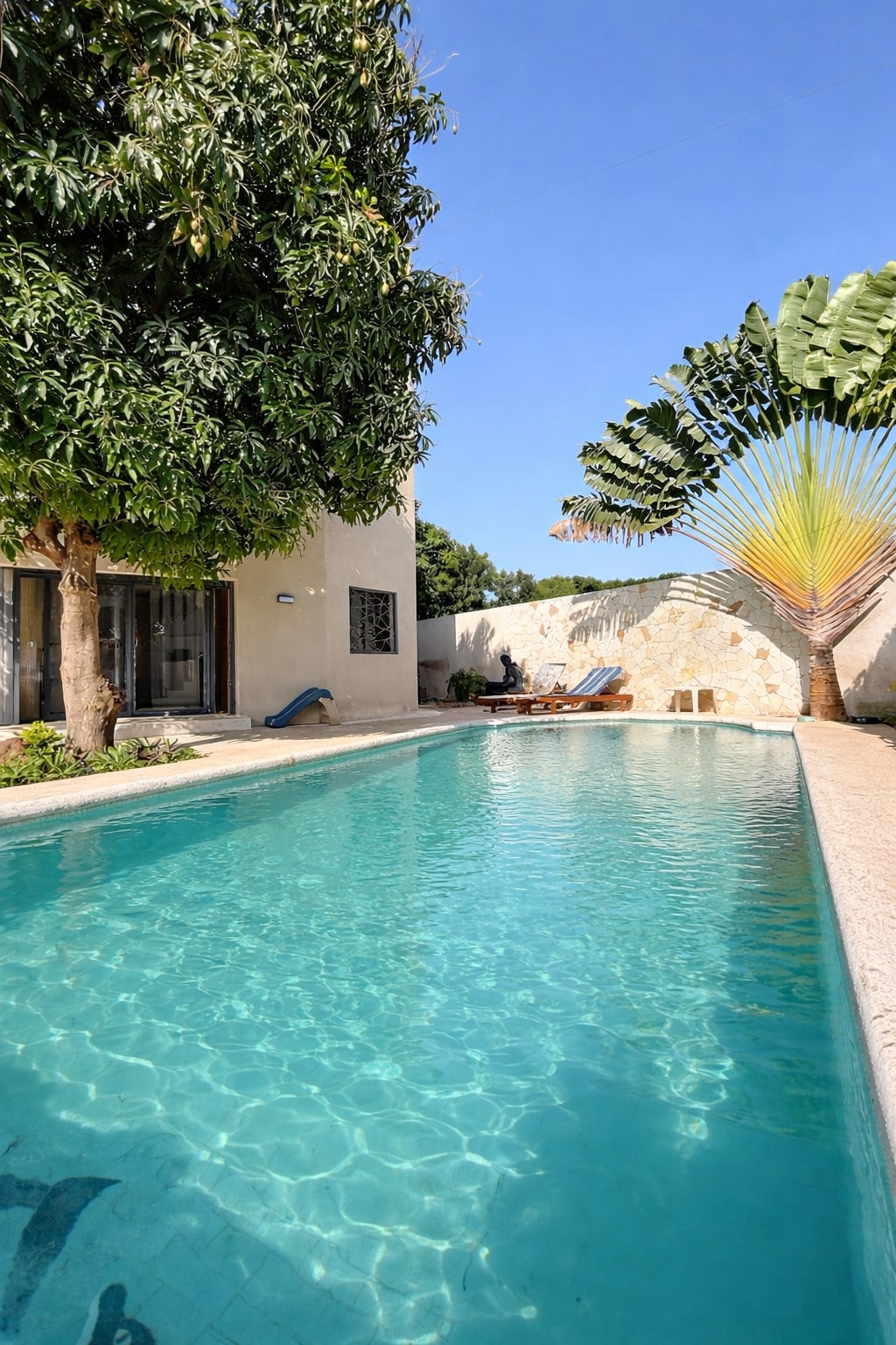 Eine wahre Oase der Ruhe mit Pool und direktem Zugang zu einem fast menschenleeren Strand. Dieses einzigartige Architektenhaus liegt an der wunderschönen Bucht von Canda, zwischen Ngaparou und Somone, 15 Autominuten von Saly, 40 Minuten vom Flughafen DSS und 1 Stunde 15 Minuten von Dakar entfernt. Es verfügt über 5 Schlafzimmer mit Badezimmern, die mit Sorgfalt eingerichtet wurden. Margot (Haushälterin), Diene (Köchin), Elisabeth (Haushälterin), Cheikh und Elage (Hausmeister) werden sich freuen, Sie dort begrüßen zu dürfen.