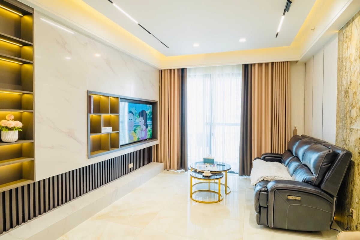 Wenn du dich einsam fühlst oder dich ausruhen möchtest. Ich denke, dieses Haus ist deine großartige Option. vy-designing Apartmentregale laut Indochine. Dieses Haus sorgt dafür, dass du dich luxuriös fühlst - ein entspannendes Sofa . Dachmatratze . Der Pool auf der 35 Etage auf dem Dach bietet den besten Blick auf den Fluss. Du kannst dich mit deinen Freunden mit Musik entspannen und dich auf dem Dach grillen. Sauna und in Not Filmraum für 10 Personen. Es ist wie eine Resort-Wohnung mitten in der Stadt.