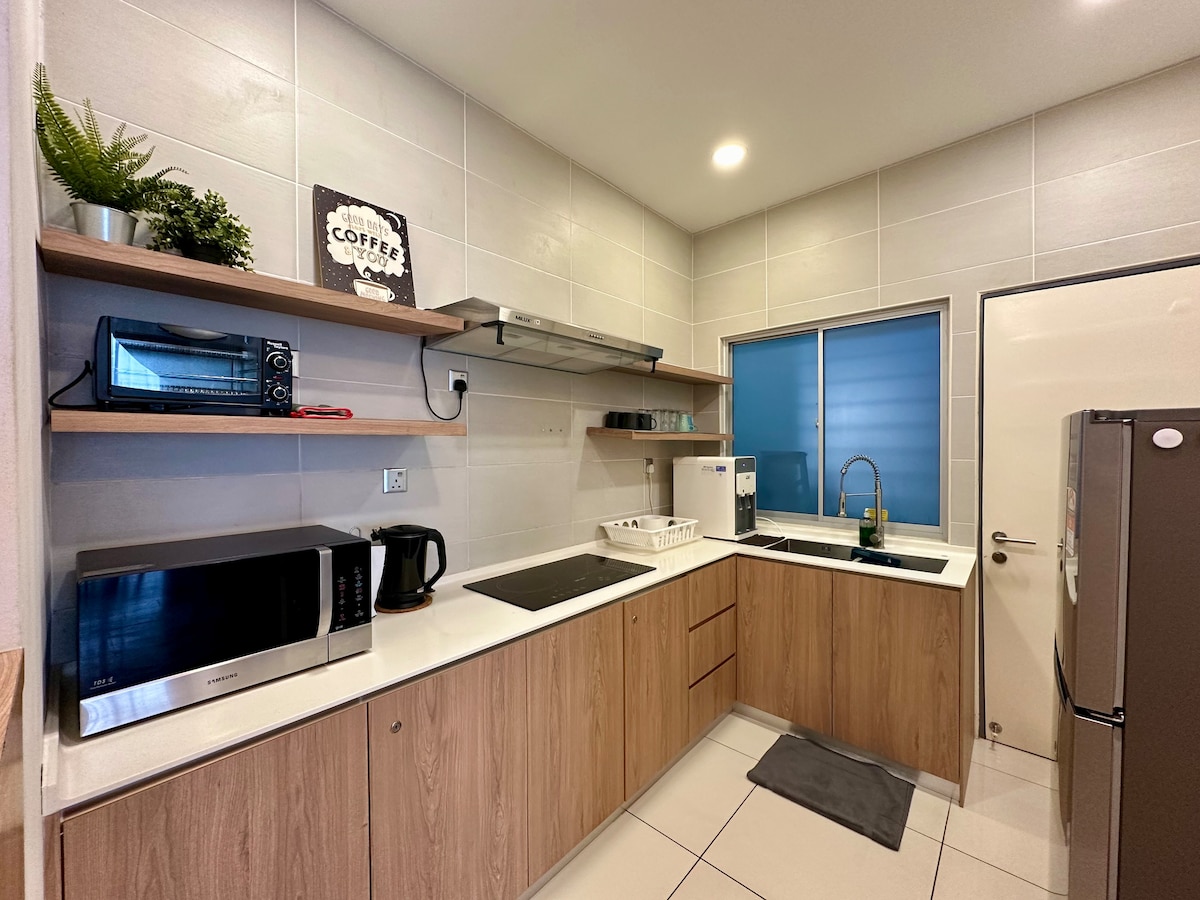 Stadtgebiet, Johor Bahru - Einstöckiges Eckgrundstück mit Terrasse - Voll möbliert - Geeignet für Zusammenkünfte mit Freunden und Familie oder Hochzeiten - 4 geräumige, klimatisierte Schlafzimmer mit Gemeinschaftsbad - Überwachungskamera rund um die Uhr Wohnzimmer - Smart-TV + Fernbedienung - unbegrenztes WLAN-Internet - Sofa und Karaokeanlage Küche - Kühlschrank, Dunstabzugshaube, Esstisch und Stühle - Ess- und Kochutensilien werden bereitgestellt (Wasserreiniger, Induktionsherd, Mikrowelle, Pfanne, Topf, Tassen...) Schlafzimmer - 4 Schlafzimmer