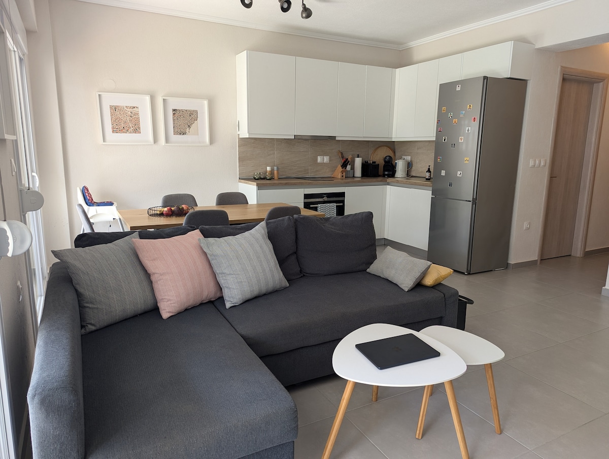 Wir begrüßen dich in unserer neu renovierten Wohnung mit 1 Schlafzimmer (40 m²), die nur 5 Gehminuten vom Strand von Nikiti entfernt liegt. WIR BIETEN SUPERSCHNELLES KOSTENLOSES WLAN MIT BIS ZU 220 MBIT/S Dies ist eine von 3 individuellen Wohnungen im zweiten Stock unseres Gebäudes. Warum arrangiere also nicht vielleicht einen Urlaub mit deinen Freunden und deiner Familie in den anderen beiden Wohnungen und profitiere davon, die gesamte Unterkunft für dich allein zu haben. NACH GRIECHISCHEM RECHT MUSST DU UNS BEI DER BUCHUNG DEINE REISEPASSNUMMER MITTEILEN