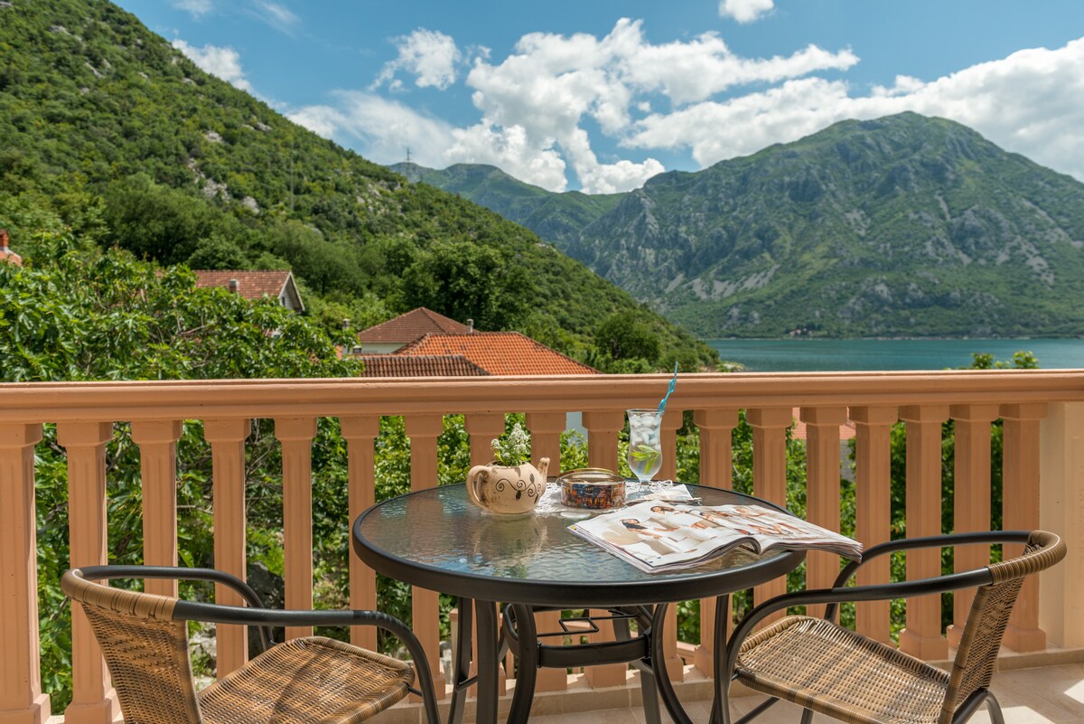 Gemütliche Wohnung mit einem Schlafzimmer im Herzen des alten Risan. Gäste können eine geräumige Gemeinschaftsveranda mit Grillplatz nutzen. Das Meer und der nächste Strand sind nur 100 m entfernt. Perast ist 2,5 km entfernt, du kannst entlang des Meeres laufen. Gemeinsame Terrasse bedeutet, dass zwei Wohnungen sie nutzen können: du und der Nachbar, jeder hat einen Sitz-/Ruhebereich arrangiert.