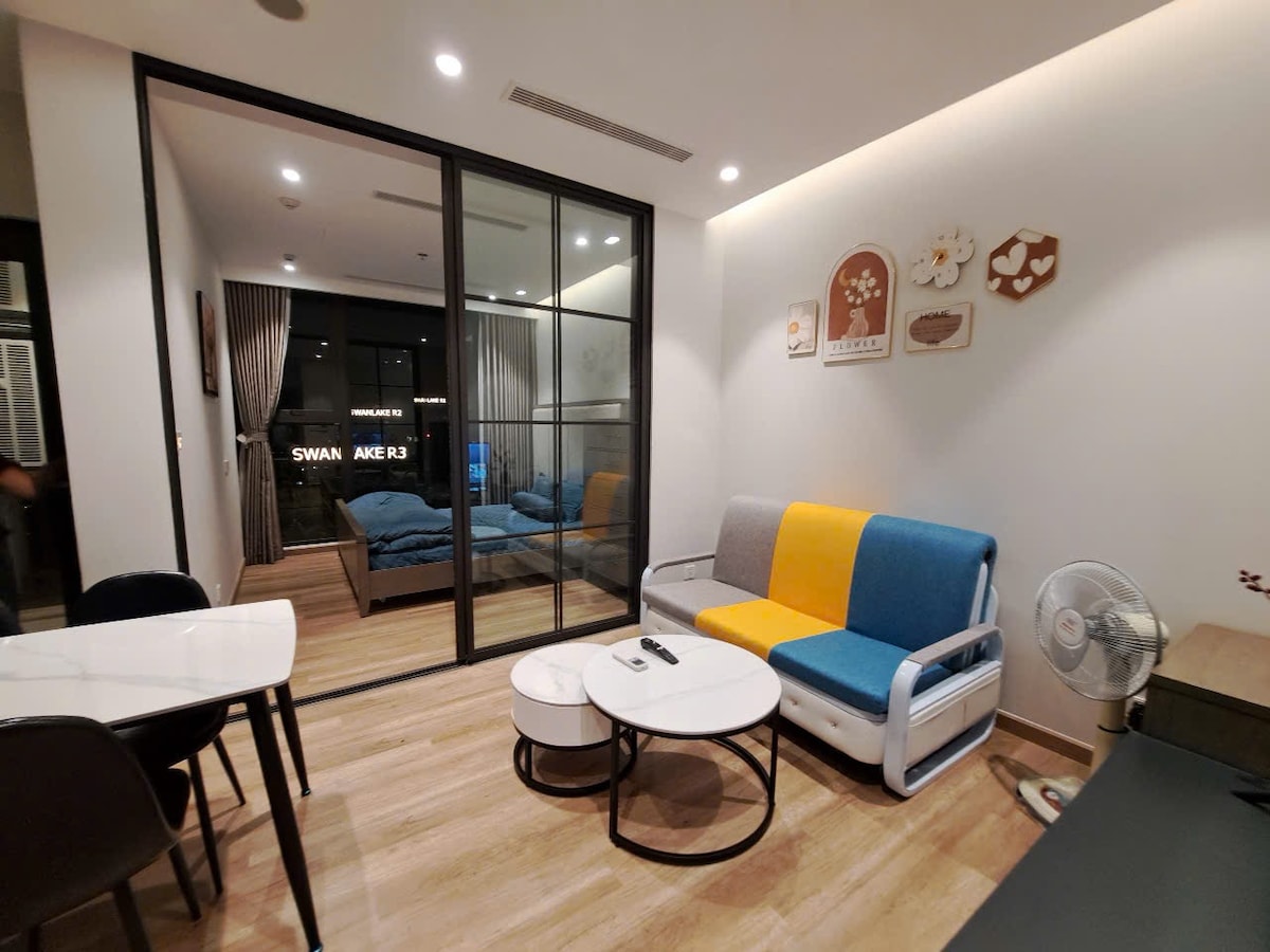 Wohnung mit 2 Schlafzimmern in Sky Forest 3 – im Herzen des grünen Stadtgebiets Ecopark. Das Apartment verfügt über zwei Betten von 1,80 m und 1,60 m, einen Schreibtisch sowie zwei Badezimmer mit Badewanne und Glaswänden. Geräumiges, offenes Wohnzimmer – lichtdurchflutete Küche. Vom Balkon blickt man auf grüne Bäume und eine offene Skyline, ideal zum Entspannen. Moderne Möbel, voll ausgestattet: WLAN, TV, Küche, Waschmaschine, Wäschetrockner, Klimaanlage. Geeignet für Familien, Freundesgruppen oder längere Geschäftsreisen.