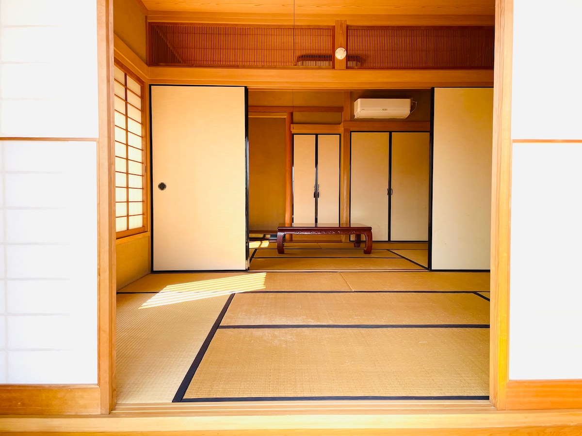 Es gibt zwei ruhige Zimmer im japanischen Stil, eines mit 8 Tatami-Matten und eines mit 6 Tatami-Matten.Genieße eine entspannende Zeit abseits der Stadt und lausche den Klängen der Natur. [Blue Retreat base] Genieße einen entspannenden Moment am weitläufigen Rand.Du kannst den Geschmack des japanischen Lebens so spüren, wie es ist. Du kannst ein gutes altes japanisches Haus erleben. Es ist ein sehr ruhiger Ort. Daher kannst du die Klänge der Natur genießen, die sich mit den Jahreszeiten ändern, wie Vögel, Zikaden und Frösche. Es hat eine ruhige Atmosphäre im Gegensatz zum hektischen Treiben der Stadt. Empfohlen für alle, die eine erholsame Zeit verbringen möchten!! * Das Zimmer befindet sich in einem alten Gebäude, das über 60 Jahre alt ist.Es ist gut gereinigt, aber es gibt einige Teile, die sich alt anfühlen.Danke für dein Verständnis.Bitte mach dir keine Sorgen wegen des hohen Alters.Es ist auch eine sehr ruhige Wohngegend.Bitte respektvoll mit der Lautstärke umgehen.