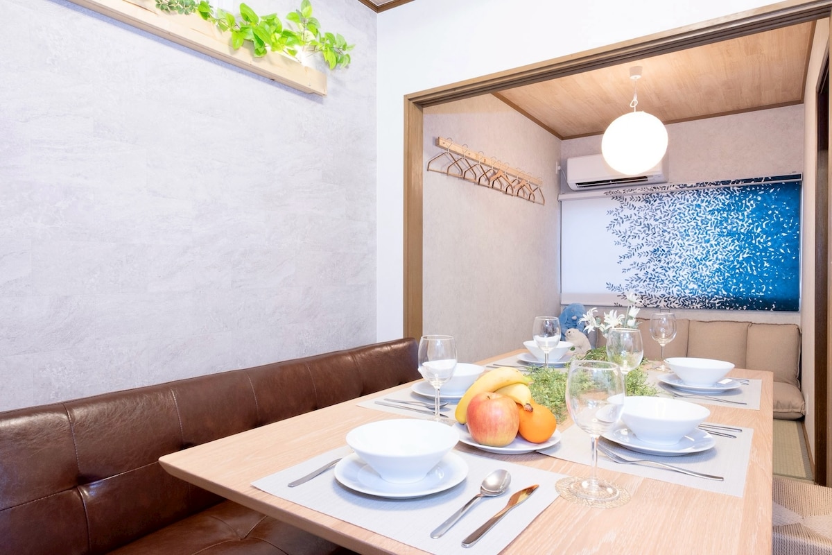 Wir haben ein traditionelles japanisches Haus renoviert, das sein natürliches Holzambiente bewahrt. Der natürliche Stil, zusammen mit sanften Wandfarben und -möbeln, bietet nach deinen Reisen eine beruhigende Atmosphäre. ☆ Nur 5 Minuten bis USJ! Nur 5 Gehminuten vom Bahnhof Nishikujo entfernt. Ausgezeichneter Zugang zu verschiedenen Teilen von Osaka, einschließlich Umeda und Namba. ・ Günstig erreichbar über die JR Osaka Loop Line, JR Sakurajima Line und Hanshin Namba Line. ・ Direkte Routen zum Bahnhof Kyobashi, zum Bahnhof Namba und zum Bahnhof Tennoji.