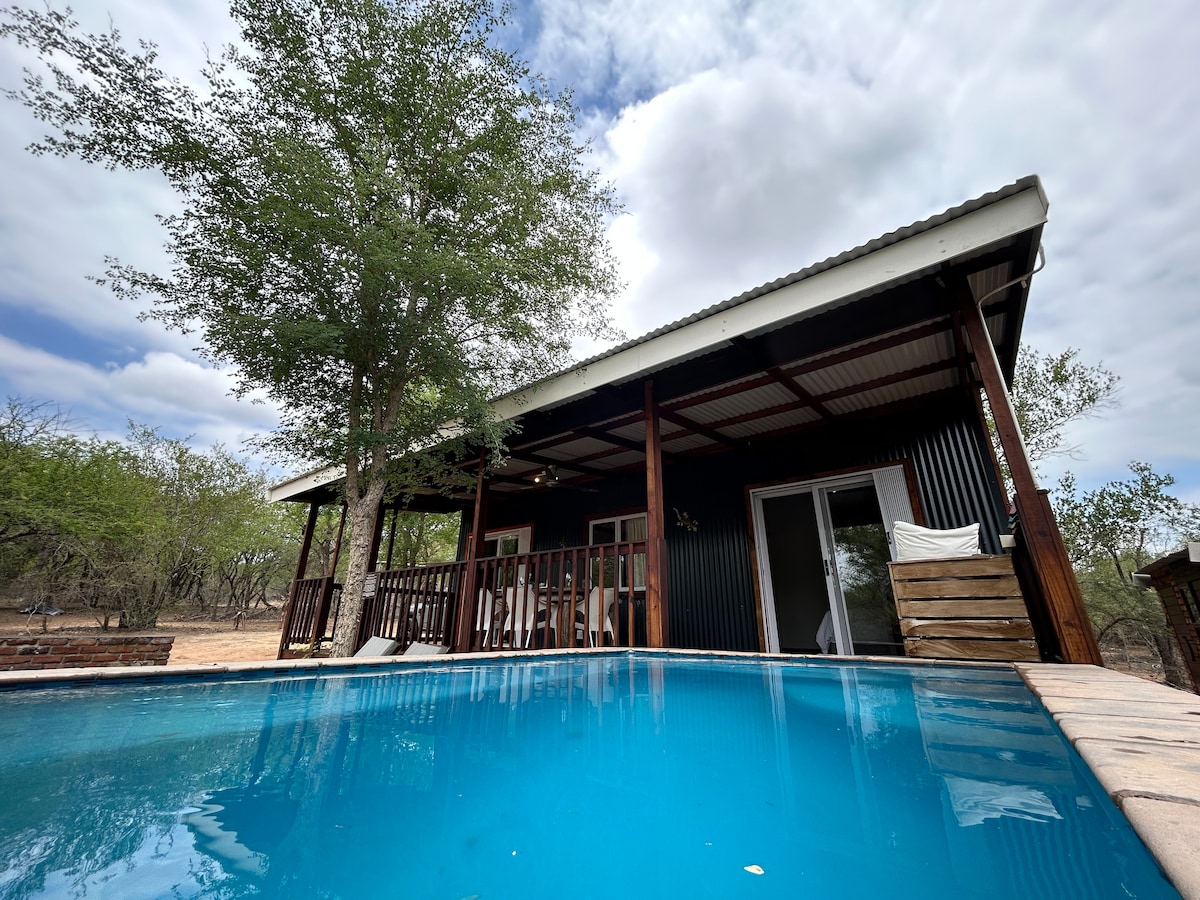 Das Wild Bunch Safari House ist ein besonderer Ort, an dem die Tiere frei um das Haus herumlaufen! Dieses freistehende Selbstversorgerhaus ist im afrikanischen Stil eingerichtet und verfügt über einen atemberaubenden Swimmingpool (Tiefe 1,6 m + Martini-Sitz), der in die „Stoep“ (Veranda) integriert ist. Angehängt ist eine Außendusche (Baum) und natürlich ein großer afrikanischer Braai und eine Feuerstelle. Das Haus verfügt auch über ein Back-Up-System, um durch die dunklen Stunden des Lastabwurfs in SA zu helfen. Nur 20 Minuten vom Tor der Krokodilbrücke im Kruger-Nationalpark entfernt.