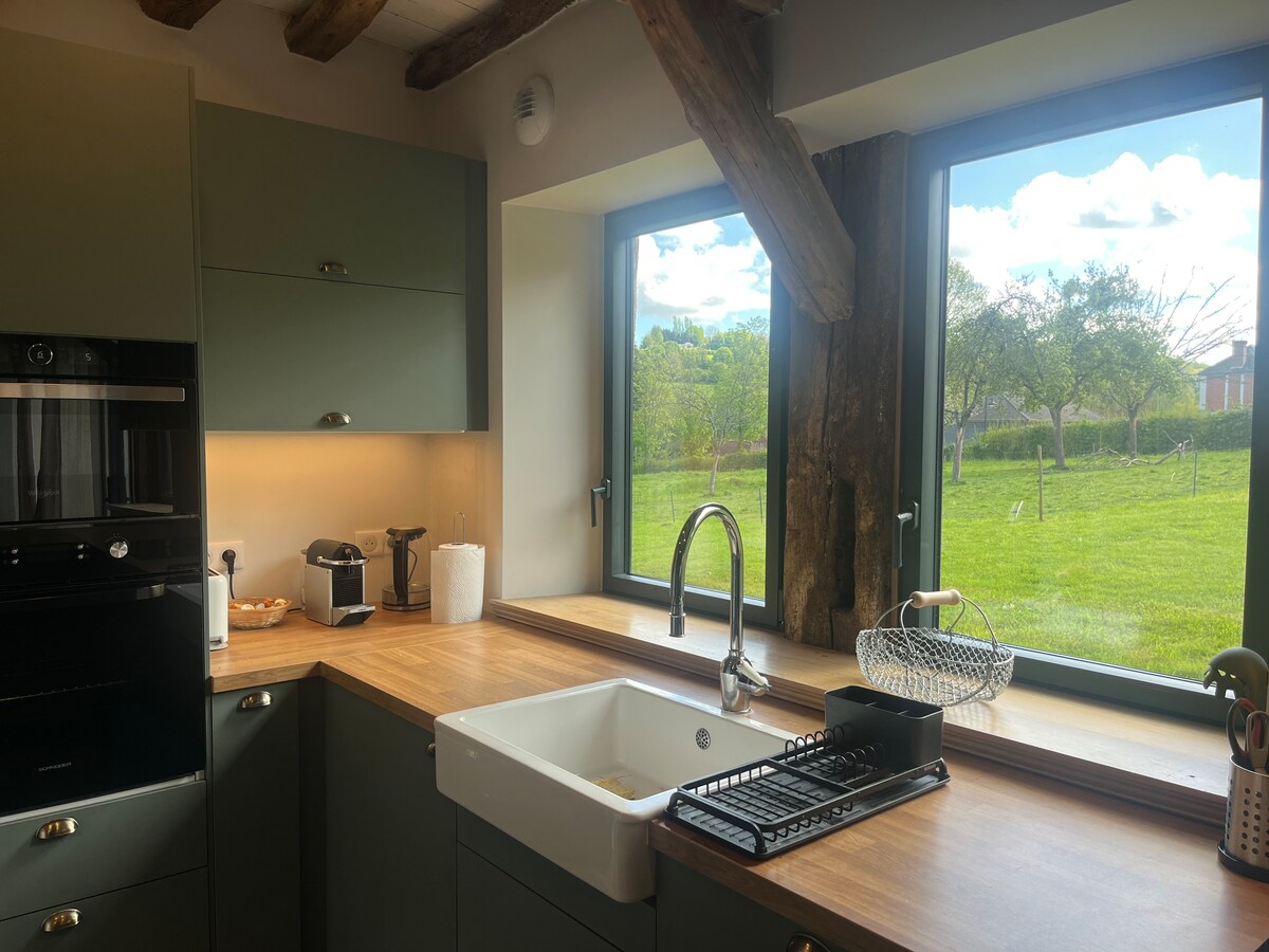 Vous profiterez d’une maison de campagne familiale, rénovée en 2020, sur une propriété de 2 hectares où séjournent quelques moutons & chevaux. Typique normande, la maison est très lumineuse & ouverte sur le jardin. Deux terrasses, dont une couverte, permettent de déjeuner dehors même les jours de météo incertaine. 🧺 Ménage, linge de lit, serviettes, torchons & bois de chauffage* : INCLUS Tous les lits seront faits à votre arrivée & la maison chauffée* (*en saison) Wi-Fi fibre haut débit.
