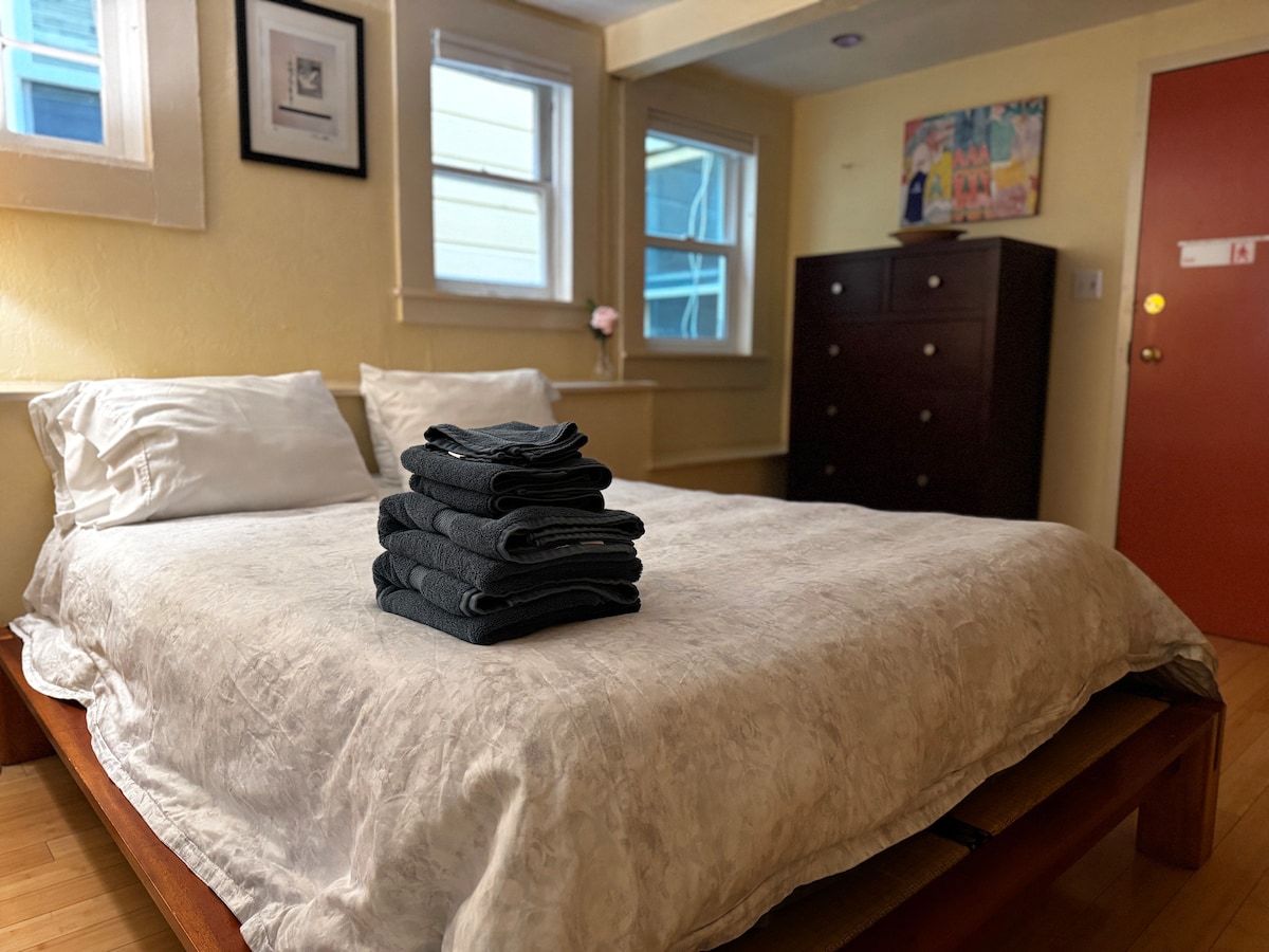 Willkommen in deinem gemütlichen Nob Hill-Hideaway – eine ruhige Suite im Erdgeschoss, nur wenige Schritte von Verkehrsmitteln, Cafés und klassischem SF-Charme entfernt! - 2 Schlafplätze | 1 Schlafzimmer | 1 Bett | 1 Bad - Privater Eingang mit eigenem Check-in - Kochnische und Esstisch - WLAN & spezieller Arbeitsplatz - Gemeinsame Terrasse mit Sitzgelegenheiten im Freien - Heizung für komfortable Winteraufenthalte