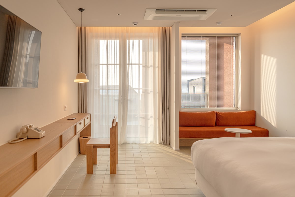 ※ Dieses Zimmer ist klein, daher kann es für Personen mit großem Gepäck unpraktisch sein. Wir empfehlen ein größeres Zimmer, vor allem, wenn du mehrere Nächte hintereinander bleibst. ※ - Wir haben einige der Gebäudegebäude in der Altstadt von Jeju umgebaut und einfache und saubere Zimmer und flauschige Bettwäsche vorbereitet. - Dies ist ein 4-stöckiges Gebäude ohne Aufzug. Es kann ein wenig unangenehm sein, wenn du viel Gepäck hast oder es schwer ist. Dieses Zimmer befindet sich in der 3. Etage. - Dies ist ein Gebäude ohne Fußbodenheizung. Im Winter bereiten wir eine Heizlüfter, eine elektrische Matte und einen Luftbefeuchter vor, damit du so warm wie möglich schlafen kannst, aber wir empfehlen es nicht für Gäste, die empfindlich auf Kälte reagieren. Wir empfehlen auch, warme Pyjamas mitzubringen. - Du kannst dein Gepäck vor dem Check-in/nach dem Check-out abstellen. - Es gibt keinen Tisch zum Essen im Zimmer, nur einen kleinen Beistelltisch. Detaillierte Adresse: 24 Gwandeok-ro 8-gil, Jeju-si