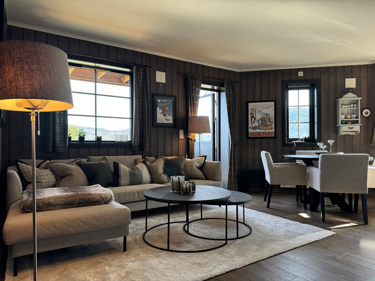 Willkommen in einer brandneuen und modernen Wohnung mit SKI-IN/OUT für Abfahrt und Langlauf und herrlichem Blick auf Krøderfjorden Das Hotel liegt in Fjellhvil, dem Symbol von Norefjell und einem der führenden Symbole von OL im Jahr 1952. Der Skilift ist nur wenige Meter entfernt, direkter Zugang zu Skipisten und abseits der Piste Nur wenige Gehminuten vom Skilanglaufloipe und den besten Restaurants in Norefjell entfernt. 4 m Deckenhöhe im Wohnzimmer mit Balkon, eine gemütliche Atmosphäre mit Hüttengefühl Fantastisches Wander- und Radwegenetz im Sommer