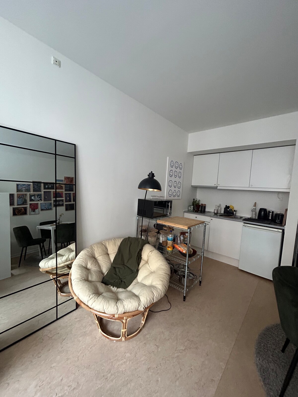 Gemütliche 2-Zimmer-Wohnung mit großem Balkon, mit einem kreativen und persönlichen Ambiente. Auf der obersten Etage und mit einem großen Balkon. Voller Licht, Charme, Pflanzen und Instrumente. Küche und Badezimmer in der ursprünglichen Form aus den 1970er Jahren. 1 Schlafzimmer, 1 Badezimmer, 1 Eingang/Flur, 1 großer Balkon und 1 großes, verbundenes Wohn- und Küchenzimmer. Im pulsierenden Teil von Kopenhagen namens Nordvest, 850 m von der U-Bahn, 180 m zum Bus direkt ins Stadtzentrum, 700 m vom kostenlosen Parkplatz, 500 m zum Fahrradverleih.