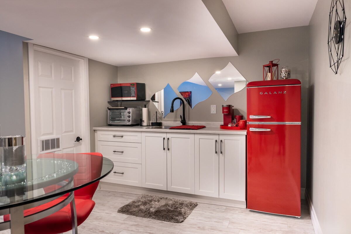 Professionell gestaltete Gästesuite mit offenem Konzept. Die Gästesuite befindet sich auf der unteren Ebene unseres Hauses und verfügt über einen komfortablen Wohnraum, um dich willkommen zu heißen und einen angenehmen und erholsamen Aufenthalt „Home-Away-from-Home“ zu bieten. Wir wohnen auf der Hauptebene des Hauses. Der Zugang zur Suite erfolgt über den gemeinsamen Eingang auf der Hauptebene unseres Hauses. Unsere Unterkunft liegt nur wenige Gehminuten vom Naturschutzgebiet „RARE“ und Wanderwegen mit Blick auf den schönen Grand River entfernt.