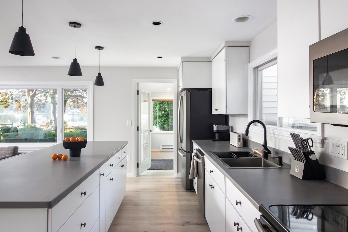 Wache beim Sonnenaufgang über dem Wasser auf, genieße deinen Kaffee in Adirondack-Stühlen nur wenige Schritte von der Küste entfernt und entspanne dich auf einer ruhigen Halbinsel in einem beschaulichen Rückzugsort an der Küste. Dieses moderne Haus mit 2 Schlafzimmern am Wasser liegt an der Narragansett Bay und bietet ruhiges Wasser, eine wunderschöne Aussicht und einfachen Zugang zum Strand. Freue dich auf stilvolle Innenräume, einen hellen Arbeitsbereich im Wintergarten und eine Außenterrasse zum Entspannen oder Essen. Erkunde Wickford Village, Newport und Narragansett – oder lass es einfach mit dem Rauschen des Wassers ruhiger angehen.