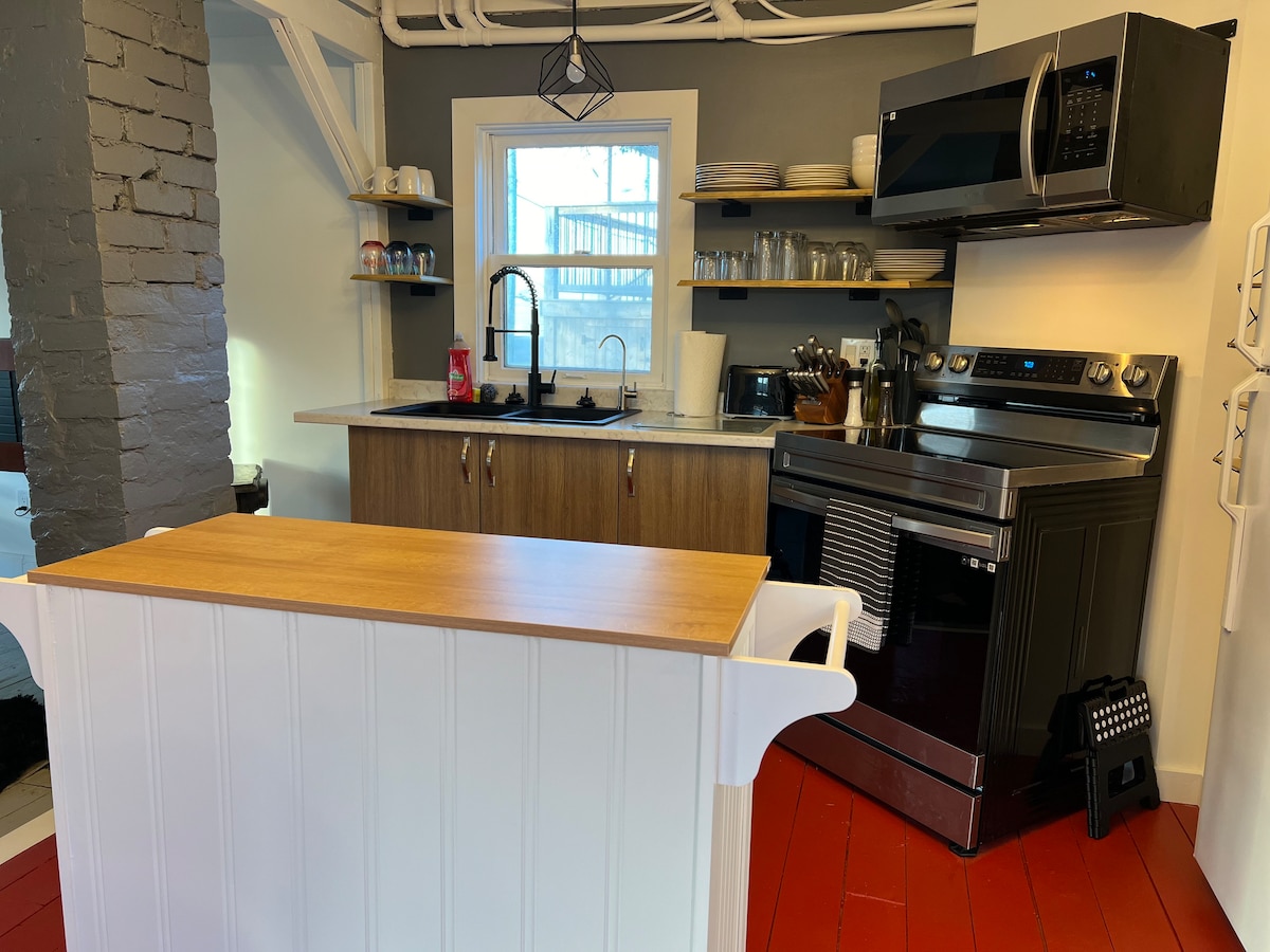 Dieses abgeschiedene Küstenhaus in Bay Roberts ist ein Neubau, der rustikalen Charme mit modernem Twist sowie einen schönen Meerblick bietet. Es verfügt über 2 Schlafzimmer, 1 Badezimmer, 2 Gemeinschaftsbereiche und eine gut ausgestattete Küche. Es gibt auch TV/Internet und eine Mini-Split-Klimaanlage. Draußen kannst du den Komfort eines Whirlpools für sechs Personen, eines Koi-Teichs und der Beerenlese im Sommer und Herbst genießen. Der überdachte Innenhof ermöglicht eine ganzjährige Nutzung. Ideal für Familien und Freunde, die zusammenkommen.