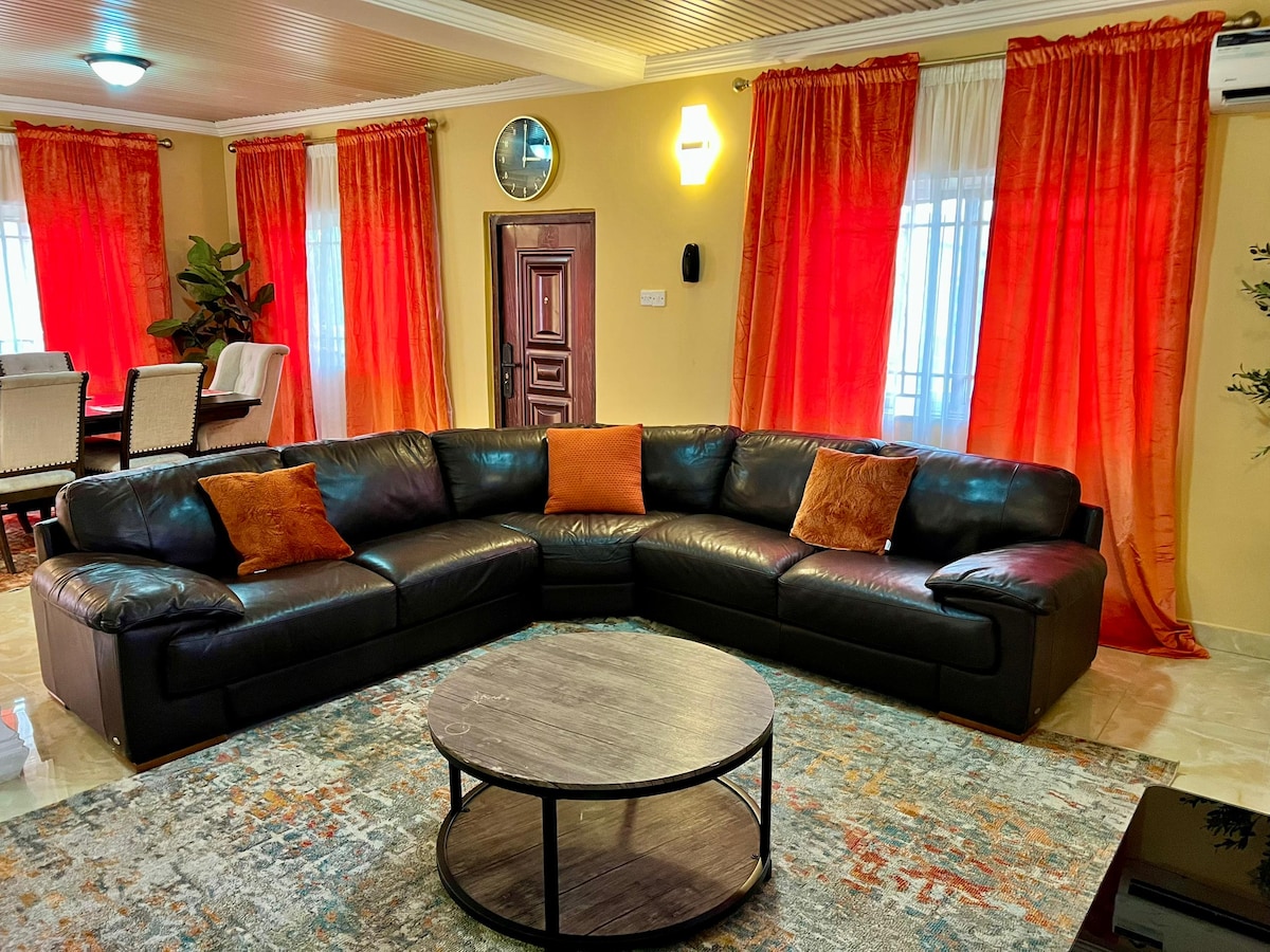 Vergiss deine Sorgen in diesem geräumigen und ruhigen Raum. Geschmackvoll eingerichtet und komplett möbliertes modernes 3-Bett-Haus mit malerischem Bergblick Perfekt für: Für Remote-Arbeiter:innen, Expats, Reisende und Geschäftsreisende. WLAN Gästetoilette Klimaanlage Besteck Solarenergie Geräumige Parkplätze Wachmann: in Videoüberwachung Strom Bitte beachte, dass sich Havillah Court auf einem steilen Hügel befindet, aber über eine asphaltierte Straße von der Hauptstraße aus erreichbar ist. Du brauchst ein gutes Auto, das bergauf fahren kann.