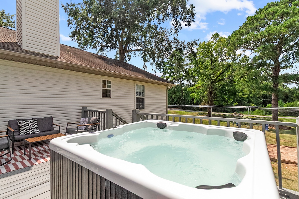 Geräumiger, komfortabler Rückzugsort in erstklassiger Lage in Tuscaloosa! Minuten vom UA-Campus und der Innenstadt von Tuscaloosa über den Highway 359 entfernt. Helles, offenes Wohnzimmer, Kinostühle, Feuerstelle, Billardtisch, Dartscheibe und Basketballkorb. Perfekt für Paare und Familien, die spielen und entspannen möchten. Egal, ob du für einen Spieltag, Campus-Touren, einen Abschluss oder ein Geschäft zu Besuch bist, du verdienst mehr als vier Wände und ein Bett. Du verdienst Raum, um zu leben und Erinnerungen zu schaffen. Buche noch heute das Alabama Guest House und entdecke es selbst!