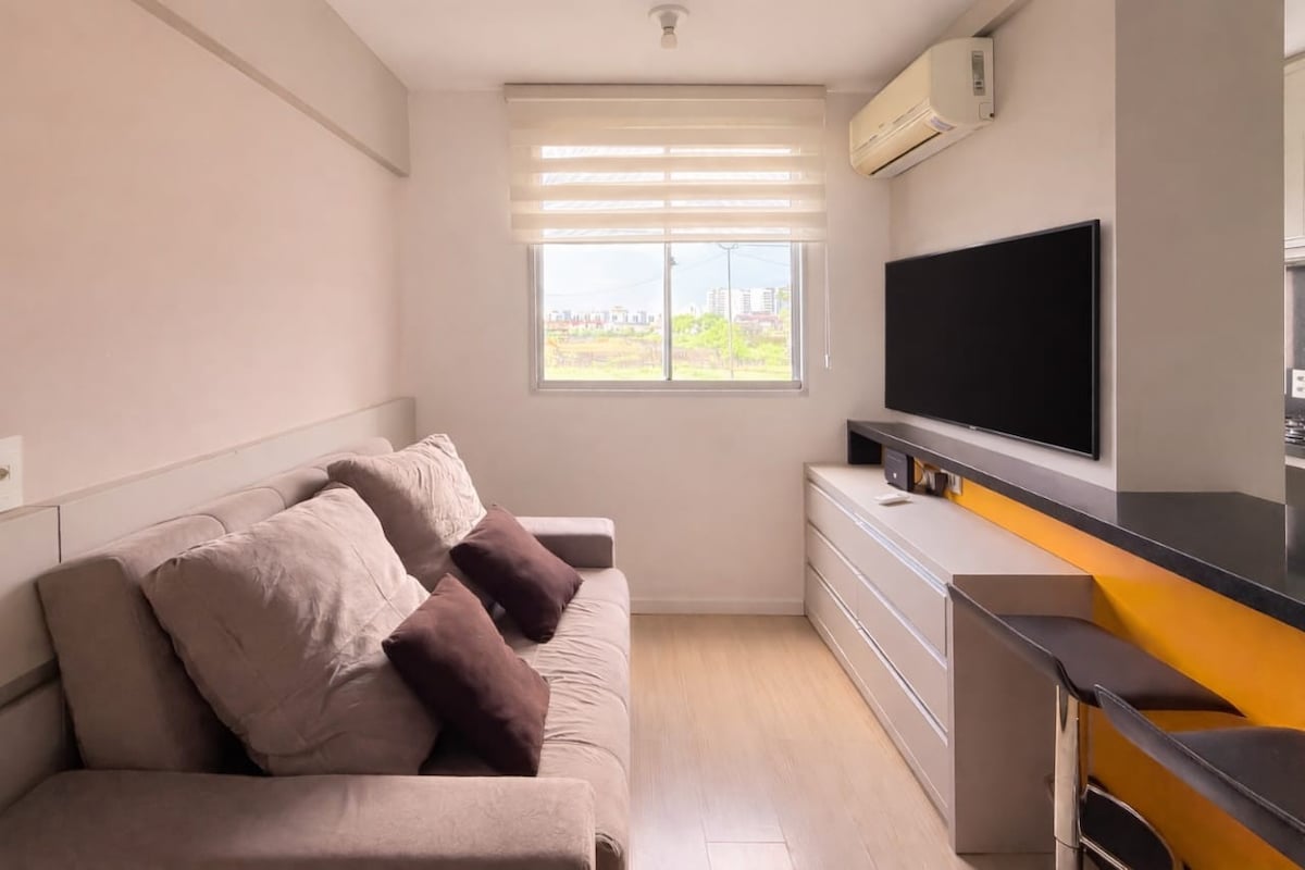 Möblierte Zwei-Zimmer-Wohnung im Zentrum von Canoas/RS, in der Nähe des Forums, Canoas Shopping, Markt, Bars und Restaurants, mit allem Komfort für bis zu 4 Personen, mit einem Doppelbett und einem Schlafsofa. Klimaanlage, voll ausgestattete Küche, Waschmaschine. Mit Garage.
