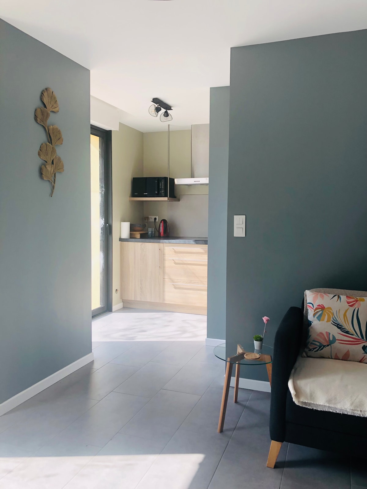 Charmante Wohnung in einem alten Stadthaus, eingebettet in eine ruhige Wohngegend. Unter dem Dach (im 3. Stock ohne Aufzug) verfügt sie über alle Annehmlichkeiten (Badezimmer, WC, Küchenzeile) und einen privaten Eingang. Dieser helle und beruhigende Raum ist in natürliches Licht getaucht und bietet eine warme und einladende Atmosphäre mit komfortablen Möbeln, harmonischen Tönen und ist kinderfreundlich.
