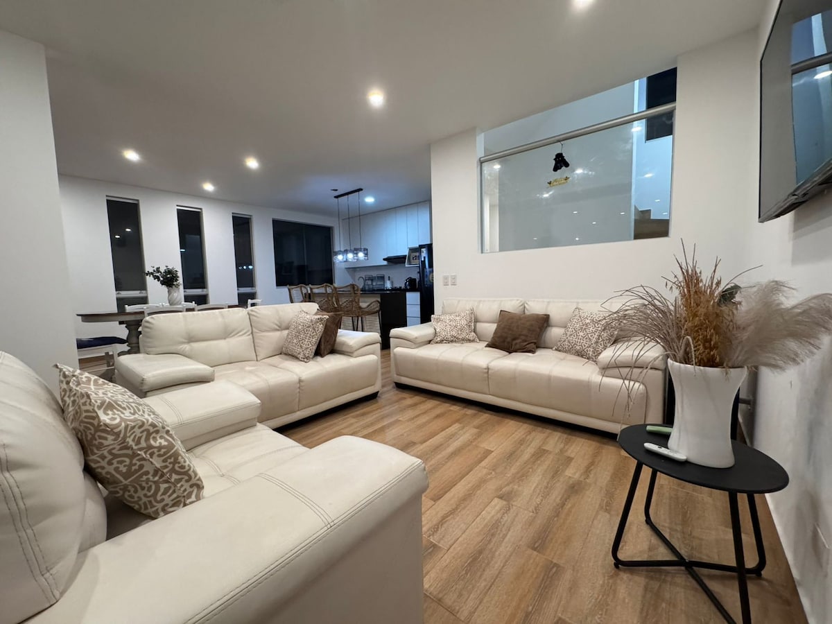 Nimm die ganze Familie mit in dieses fantastische Landhaus in Lunahuaná. Die gesamte erste Etage steht ausschließlich Gästen zur Verfügung, die gleiche mit 1 Zimmer für 5 Personen, 2 Badezimmer, 1 Zimmer mit Smart-TV von 65'', Soundausrüstung, 1 Küche mit Bosch mit 5 Backöfen und Backofen sowie einem geräumigen Samsung-Kühlschrank ausgestattet. Eine Terrasse mit 300 m ² zur Erholung, die mit einem Bildschirm mit dem Haus verbunden ist, wo du Grill, Holzofen, Feuerstelle und so weiter machen kannst.