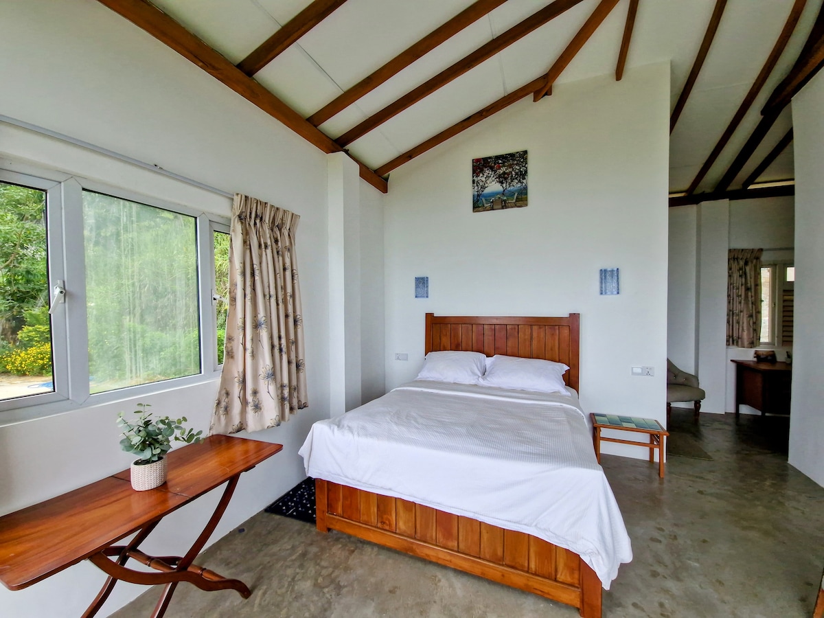 Auf einer Höhe von 2710 Fuß an der Südflanke des herrlichen Sri Lanka Hill Country gelegen, ist Happy Stones ein Urlaubsschutzgebiet und ein Rückzugsort für Geschäftsreisen. Dieses „Refugium“ bietet einen atemberaubenden Panoramablick und ein schönes, gemütliches Ambiente, das perfekt zum Entspannen ist. Hier kannst du malerische Ausblicke über sanfte Hügel und Täler, eine grüne Rasenfläche und einen Garten, gutes WLAN (20 GB pro Tag) und herrliche Abenteuerwanderungen genießen. Das Rose-Familienzimmer ist entweder für Selbstversorger, Halbpension oder Vollpension verfügbar.