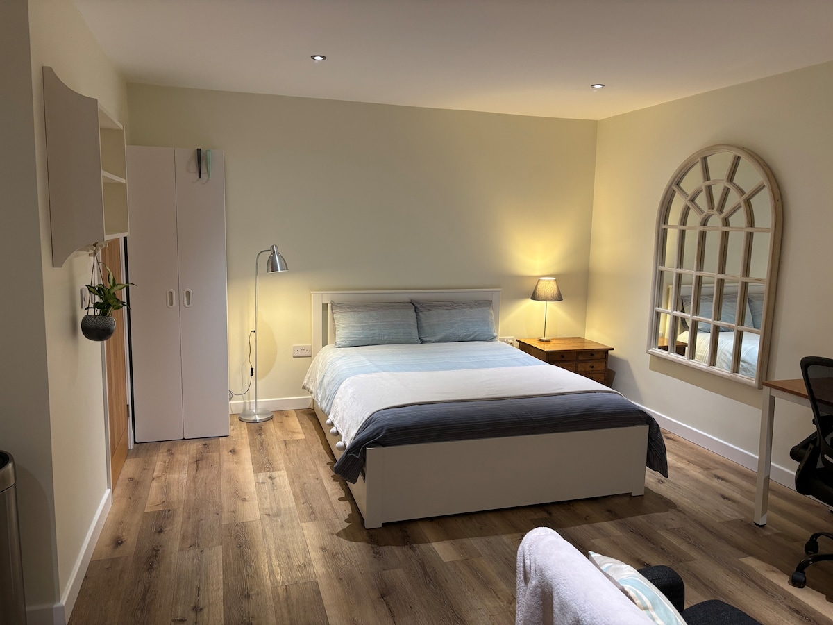 Unser modernes, helles, geräumiges, unabhängiges Studio-Apartment in Milton befindet sich in idealer Lage in einem ruhigen Dorf. In der Nähe der Wissenschafts- und Gewerbeparks, des Bahnhofs Cambridge North, der A14 und A10. Das Stadtzentrum von Cambridge ist ca. 2,5 Meilen entfernt. Wir befinden uns an einer Sackgasse. Voll ausgestattete, moderne Küche mit Backofen, Induktionsherd, Kühlschrank, Mikrowelle. Kingsize-Bett, Sofa und Esstisch/Schreibtisch, TV mit Freeview. Duschraum, zonierte Fußbodenheizung.