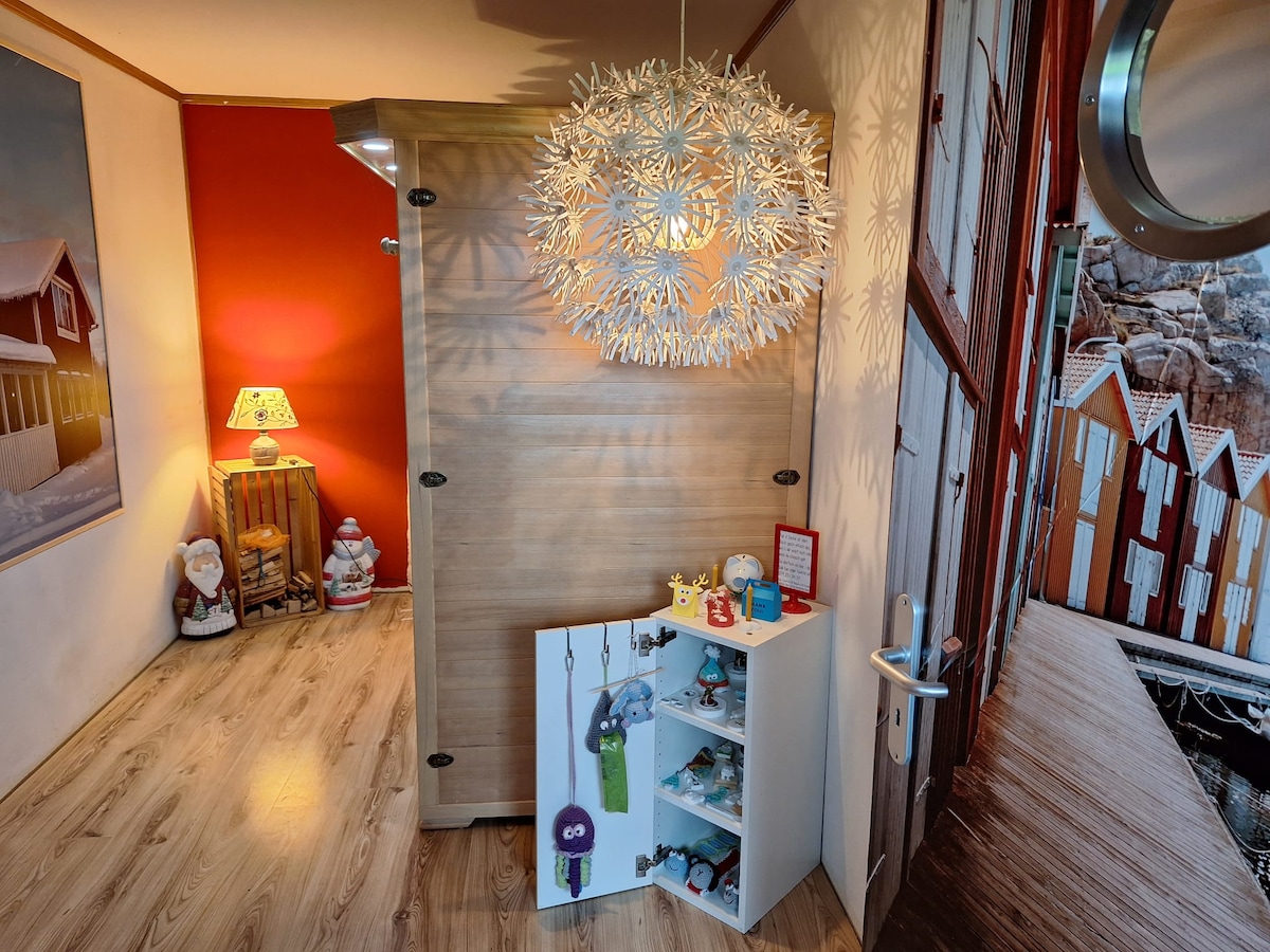 Nordisch eingerichtetes B&B im renovierten 100-jährigen ehemaligen Bauernhaus. 3 Schlittenhunde leben im Wintergarten & 1. Stock. Die Wohnung im Parterre hat: Schlafzimmer mit Blick auf die Berge | Kinderzimmer/Bibliothek | Infrarot-Sauna | Ess-/Wohnraum mit Schwedenofen & Schlafsofa | Küche | kleines Badezimmer. Die Zimmerhöhe im Bad, im Kinderzimmer und im Schlafzimmer ist 1.83 m. Die anderen Zimmer sind normal hoch. Die PanoramaCard Thunersee (Gästekarte) ermöglicht dir Vergünstigungen.