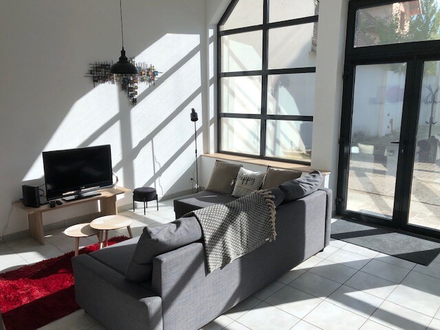 Erleben Sie eine romantische Auszeit in unserem charmanten 4 Sterne-Loft im Herzen von Barr. In einem ruhigen Innenhof eines elsässischen Fachwerkhauses erwartet Sie eine großzügige und komfortable Unterkunft mit offener voll ausgestatteter Küche, gemütlichem Wohnbereich, Queensize-Bett, ebenerdige Dusche mit separatem WC, Ankleide, Klimaanlage und Smart-TV. Ein Tandem sowie eine Ladestation für E-Bikes, dazu eine private Garage. Ein stilvoller und herzlicher Ort für besondere Momente zu zweit.