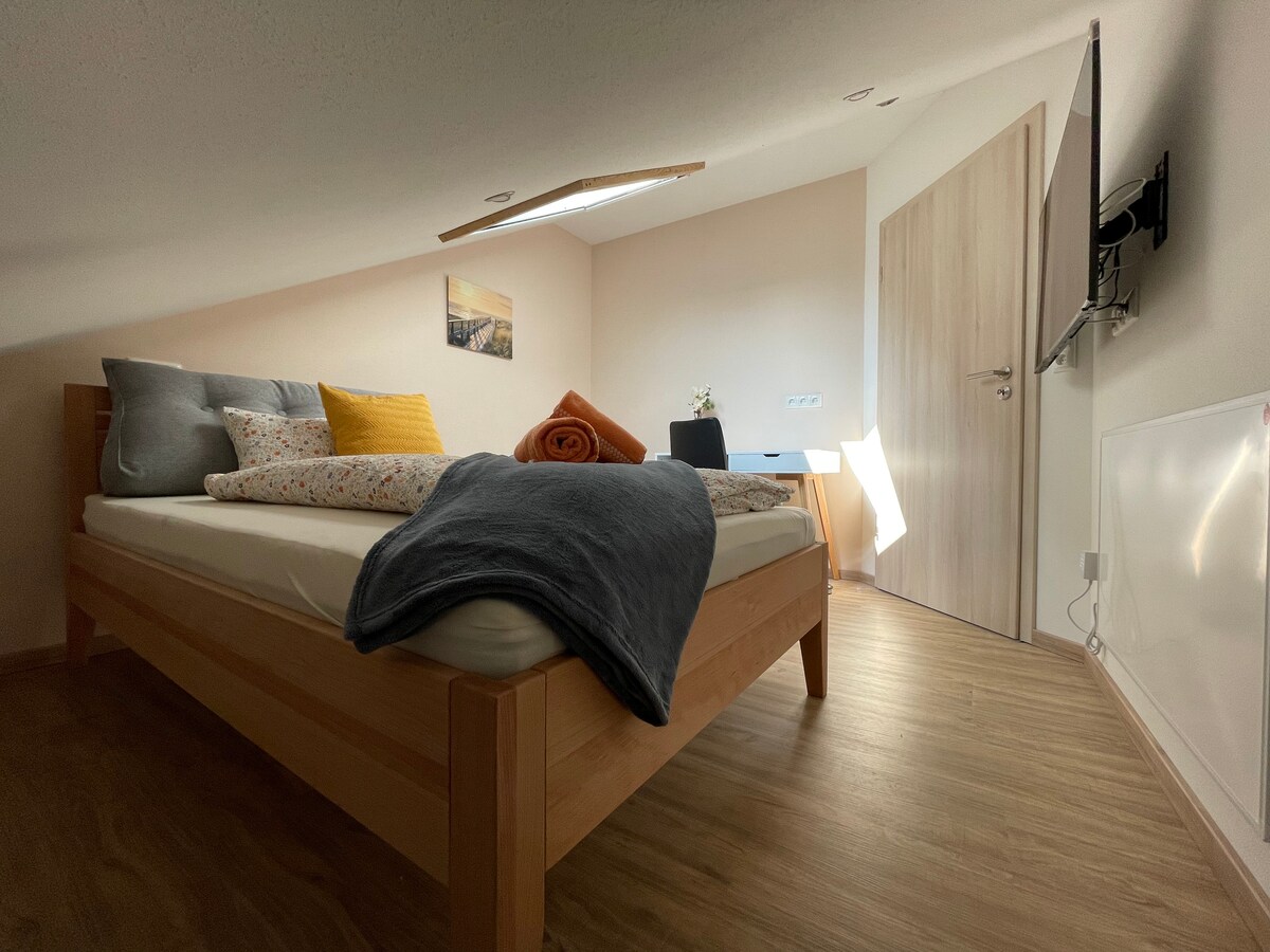 Sehr gemütliche, stilvolle DG Wohnung mit zwei Schlafzimmern ,ausgestattet mit Smart TV und Arbeitsplatz. Kleine Küche, Bad mit Waschmaschine und Trockner. Der Anschluss zur A96 ist in wenigen Autominuten zu erreichen. Die Stadt Mindelheim ist nur 10 km entfernt. Das schöne Allgäu lädt zu vielseitigen Ausflügen ein.
