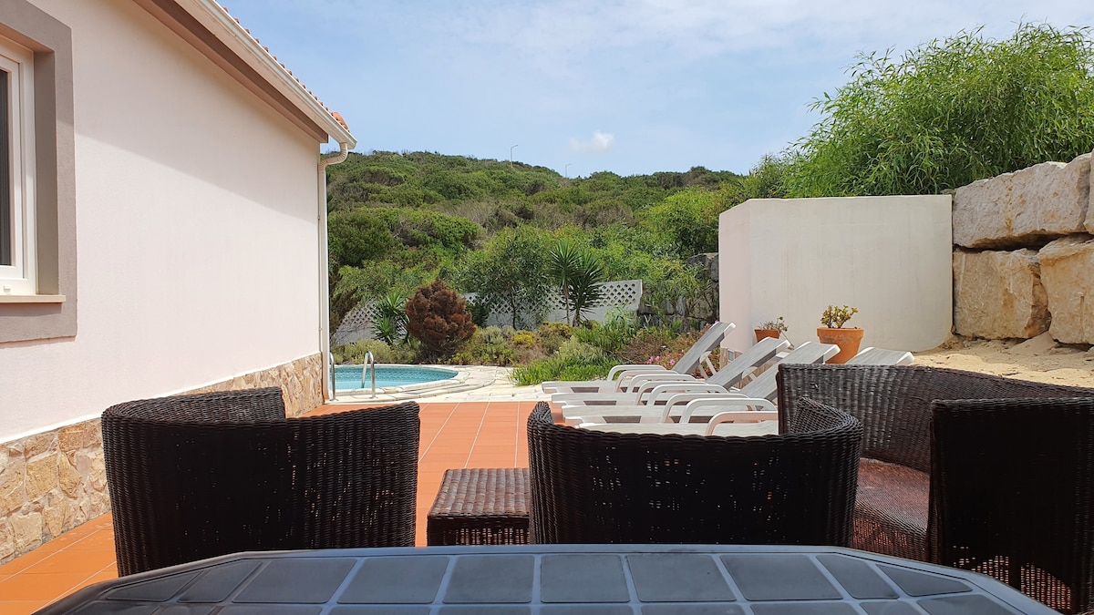 Erlebe einen traumhaften Kurzurlaub in unserem Óbidos Lagoon Beach House. Entspanne dich am geräumigen Pool, genieße das Essen im Freien mit unserem Grill und entspanne dich in den hängenden Eierstühlen, während du die sanfte Brise der Lagune genießt. Unser Haus mit 4 Schlafzimmern verfügt über ein gemütliches Wohnzimmer mit einem Pelletkamin, Heizung und Klimaanlage, WLAN, einer Suite für Privatsphäre und einer voll ausgestatteten Küche. Entdecke die ruhige Umgebung.