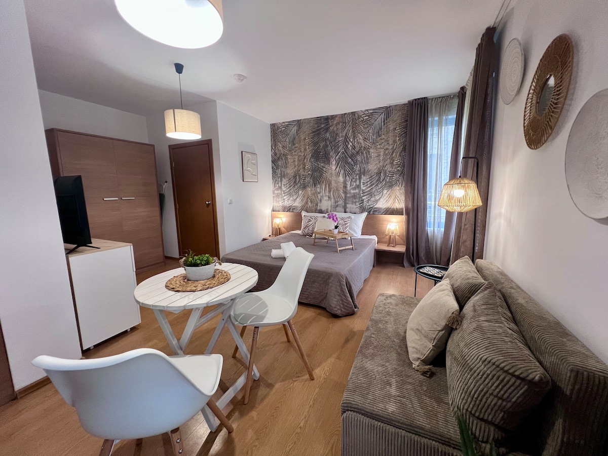 ✨ Modernes Studio am Meer in der Villa Disana & Spa ✨ Stilvolle und gemütliche Wohnung, gerade renoviert – alles ist nagelneu🤍 📍 Perfekte Lage – 5 Yasen Street — Das Meer ist nur 2 Minuten entfernt — Zentrum von Sveti Vlas – 5 Minuten – In der Nähe gibt es jede Menge Restaurants, Cafés und Geschäfte. 🏡: Eine helle, moderne Wohnung im 2. Stock (es gibt einen Aufzug) 🍽 : — Waschmaschine - Elektroherd - Mikrowelle – Multikocher Alle notwendigen Küchenutensilien 📶 Gemütlich: — WLAN — Smart-TV + Netflix - Haartrockner - Bügeleisen – Orthopädische Matratze