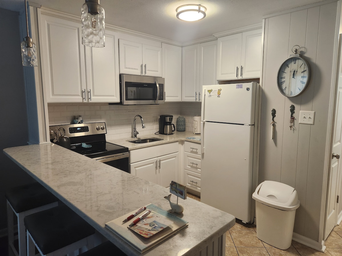 Schöne Wohnung am Meer in unschlagbarer Lage mit fabelhafter Ausstattung. Die Wohnung befindet sich in günstiger Lage zu einer Vielzahl von Restaurants, Geschäften, einem Lebensmittelgeschäft. Gästen haben freien Zugang zu WLAN, Roku-Kanäle und direkter Fernseher. Das Condo-Gebäude verfügt über einen Innenpool, einen Außen- und einen Babypool (saisonal), einen Spielplatz, einen modernisierten Spielplatz, ein Kino, eine Feinkost- und Eisdiele, Tennis- und Pickleballplätze, einen Basketballplatz, einen Billardraum, eine Sauna und ein Fitnesscenter.