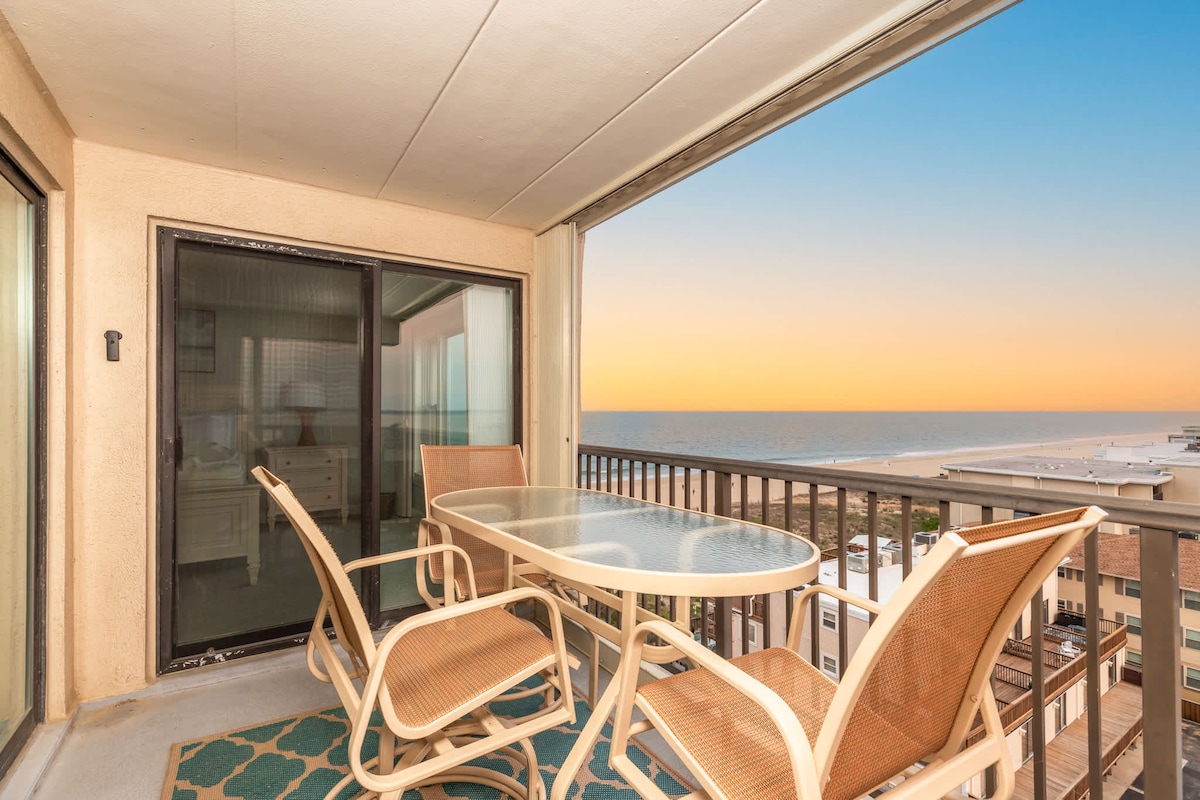 Lehne dich zurück und entspanne dich in diesem ruhigen, stilvollen Raum. Diese Wohnung mit einem Schlafzimmer ist der perfekte Ort für 1-2 Paare oder für eine Familie. Du hast einen raumhohen Blick auf den Strand sowie erstaunliche Sonnenauf- und Untergänge von den beiden separaten Balkonen. Die Küche ist gut ausgestattet, um jedes Essen zu kochen oder in den vielen Restaurants von Ocean City zu essen. Dein Aufenthalt verfügt auch über 4 Poolpässe für den Zugang zum saisonalen Außenpool vor Ort (von der Einheit aus sichtbar) und Zugang zu den Tennis-/Pickleballplätzen des Gebäudes!