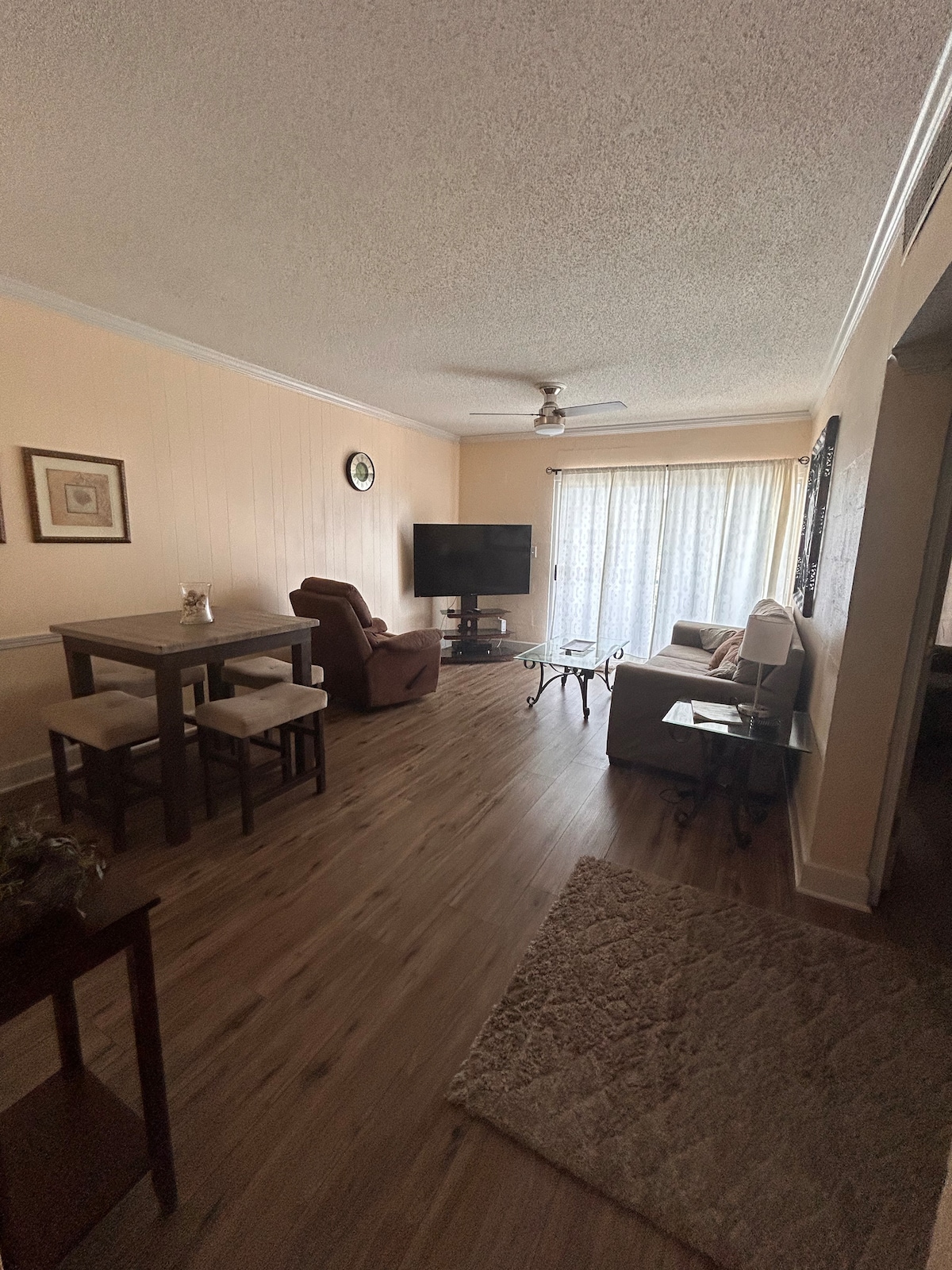 Willkommen in unserem glücklichen Ort! Nur 5 Meilen (ca. 10 Minuten Fahrt) vom Strand entfernt, ist dieses kürzlich renovierte, einstöckige Haus dein perfekter Kurzurlaub. Durchdacht für Komfort und Bequemlichkeit, bietet es einen geräumigen, entspannenden Rückzugsort für Familien, Paare oder kleine Gruppen, die sich entspannen und die Gegend genießen möchten. Egal, ob du Strandtage, ruhige Abende am Pool oder einfach einen komfortablen Ort zum Auftanken planst, diese Unterkunft bietet alles, was du für einen unvergesslichen Aufenthalt benötigst.