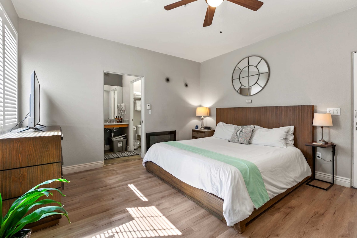 Niedliche 1BR Oma-Einheit, BR für 2 Erwachsene, Schlafsofa für 1 zusätzliche Person, aber es wird eine zusätzliche Person berechnet. Komplette Küche und Badezimmer, Badewanne und Dusche, weiches Wassersystem. 50-Zoll-Fernseher, eigenständiger Check-in, privater Eingang, Sicherheitslichter, Parkplatz auf dem Grundstück. WLAN verfügbar. Ruhige Gegend. Einheit auf einem 1 Hektar großen Grundstück. Der Nachbar nebenan zur Oma-Einheit ist 2 Hektar entfernt. Eukalyptusbäume haben ein Paar Falken, die man fliegen sehen kann. Lokale Strände & Weingüter 15 Minuten. Es tut mir leid, keine Haustiere.