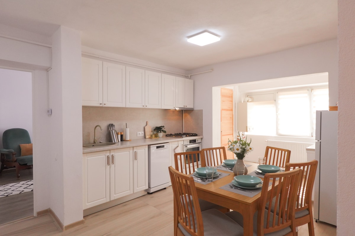 Willkommen im Thaleia Retreat, einem neu renovierten, geräumigen und hellen Apartment mitten im Herzen von Ocna Mureș! Ideal für Familien bietet diese Wohnung mit zwei Schlafzimmern den Komfort und die Privatsphäre, die du in großartiger Lage brauchst. Die Lage ist ein echter Vorteil – nur wenige Schritte von: Supermärkte • Lokale Terrassen und Restaurants • Fitnessräume/Fitnessraum Buche jetzt und genieße Gastfreundschaft und Ruhe im Herzen der Stadt!