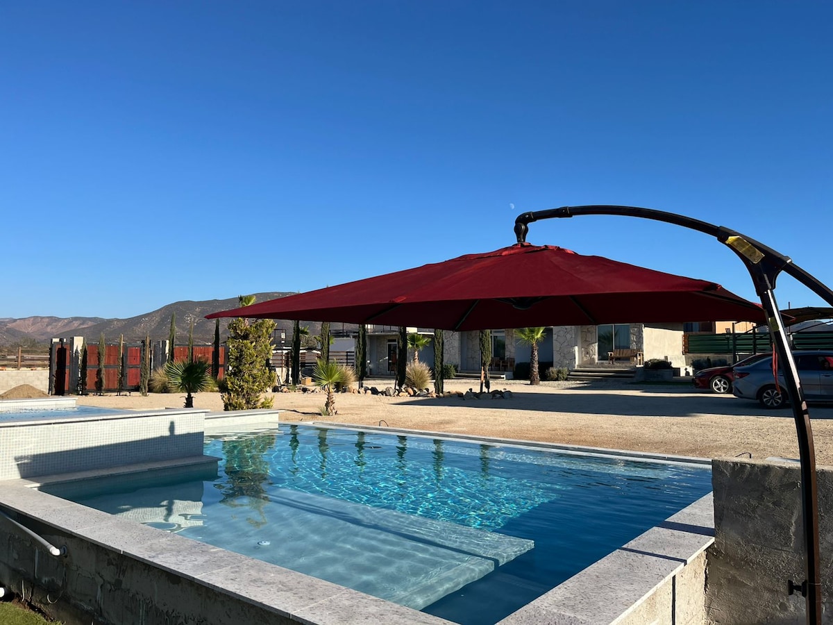 🏡 Casa Umbral II befindet sich in der Casa Umbral Hacienda, einem Unterkunftskomplex mit 5 Häusern und 2 Zimmern, mit einer Gesamtkapazität für 32 Personen. Das Haus verfügt über einen kleinen privaten Pool sowie zwei Gemeinschaftspools, Terrassen, Esszimmer im Freien, Liegestühle, Vegetation und einen privaten Whirlpool in jedem Haus. Ideal, um Valle de Guadalupe zu genießen 🍷🌿