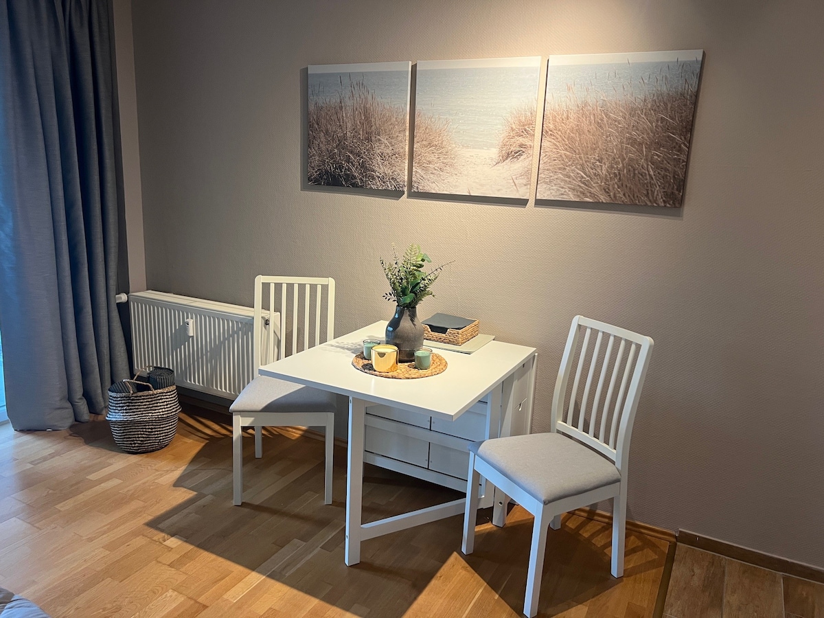 Willkommen in meinem Apartment GreyPearl. Dieses frisch renovierte hochwertige 45m² Apartment bietet alles, was du für einen entspannten und aktiven Aufenthalt in Büsum brauchst: → KINGSIZE-Bett → Smart-TV & NETFLIX in Wohn und Schlafzimmer → NESPRESSO Kaffeemaschine → moderne Küche → Terrasse mit Bestuhlung → Fußläufig zum Zentrum, und 300m von der Perlebucht entfernt → inklusive Bettwäsche und Handtücher → Parkplatz ☆"Eddy ist sehr hilfsbereit und antwortet superschnell. Jederzeit wieder."