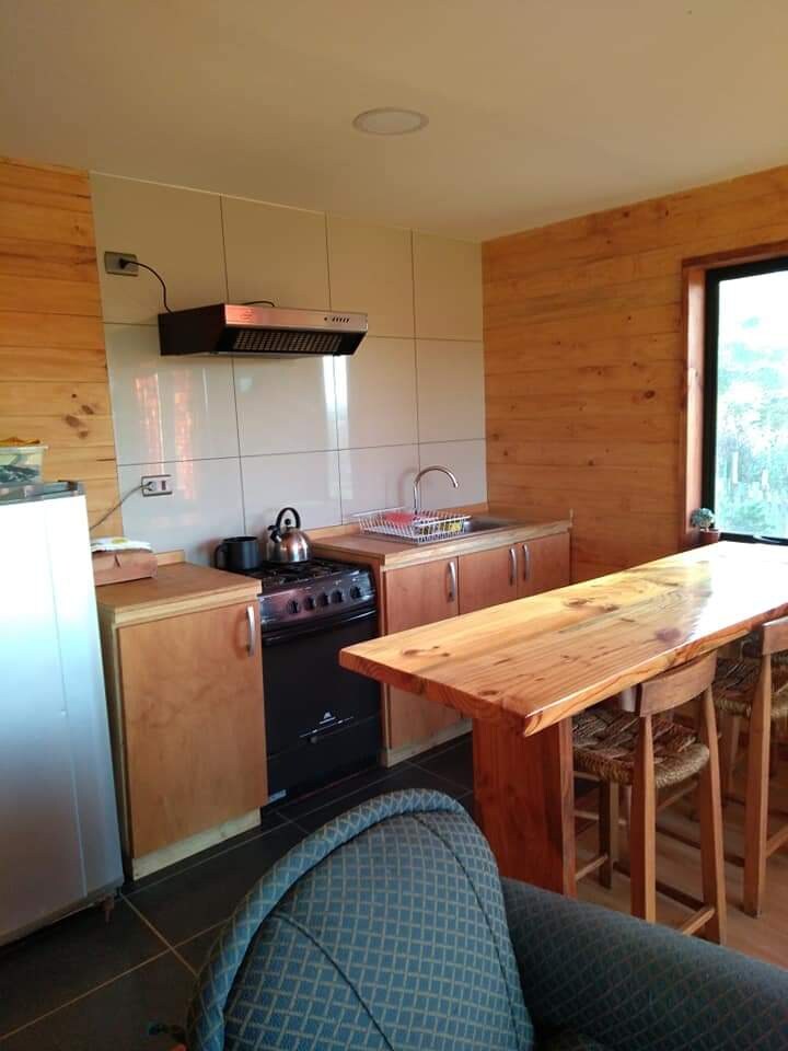 Es una hermosa y cómoda cabaña la cual te permitirá disfrutar de la hermosa playa de Matanzas y todos sus alrededores. Tienes 1 dormitorio con closet, 1 baño y cocina junto a un living comedor que se comunica directamente a una linda terraza donde podrán disfrutar de Hot Tub el cual tiene una hermosa vista a la quebrada de Matanzas. Todos los recintos tienen una vista que logra dominar sector de la quebrada Matanzas y el mar a lo lejos. Además, podrán aparcar su vehículo al lado de la cabaña.