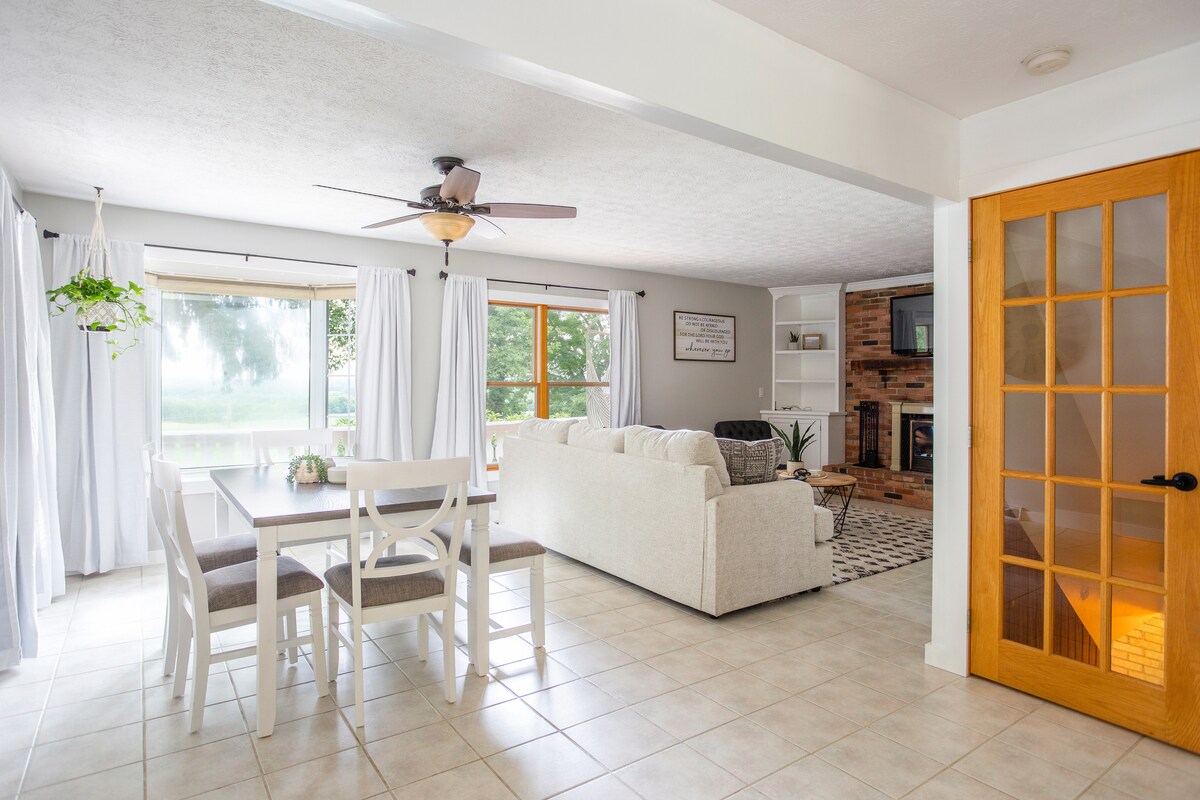 Willkommen in Heleena aus der Mitte des Jahrhunderts. Wir laden dich ein, in die Vergangenheit zurückzukehren und gleichzeitig die modernen Annehmlichkeiten von heute zu genießen. In der Nähe von allem, was die Hocking Hills zu bieten haben! Das Wohnzimmer ist bereit für dich, um dich in der Leseecke zu entspannen, vor dem elektrischen Kamin zu sitzen und „I Love Lucy“ auf dem Rahmen-TV zu sehen, oder eine Platte aufzulegen und von Elvis, Johnny Cash, Pink Floyd oder den Beatles unterhalten zu werden. In der Nähe von Geschäften, den Hocking Hills und Parks. Kamera mit Blick auf die Einfahrt/Straße.