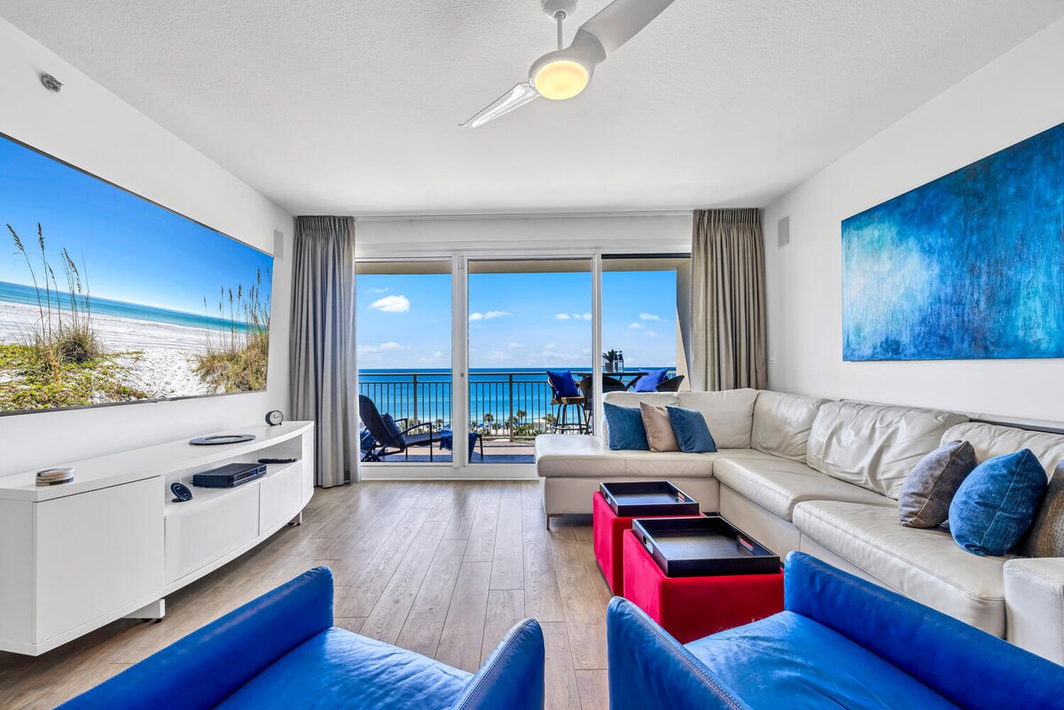 Penthouse mit schönem Blick auf den Golf in diesem luxuriösen, gehobenen Ferienhaus. Großer Balkon mit Blick auf Pool und Golf. 2 große Schlafzimmer mit luxuriösen Kingsize-Betten, beide Schlafzimmer haben Balkonzugang. Entspanne dich am größten Lagunenpool von Destin. Genieße den beheizten Pool, den Whirlpool, die Wasserfälle, das Bistro-Restaurant und das Café. Tiki-Bar und Pool-Service! Tennisplätze, Pickleball, Kinderspielplatz und Fitnessraum. Neue Holzkohlegrills vor Ort hinzugefügt!